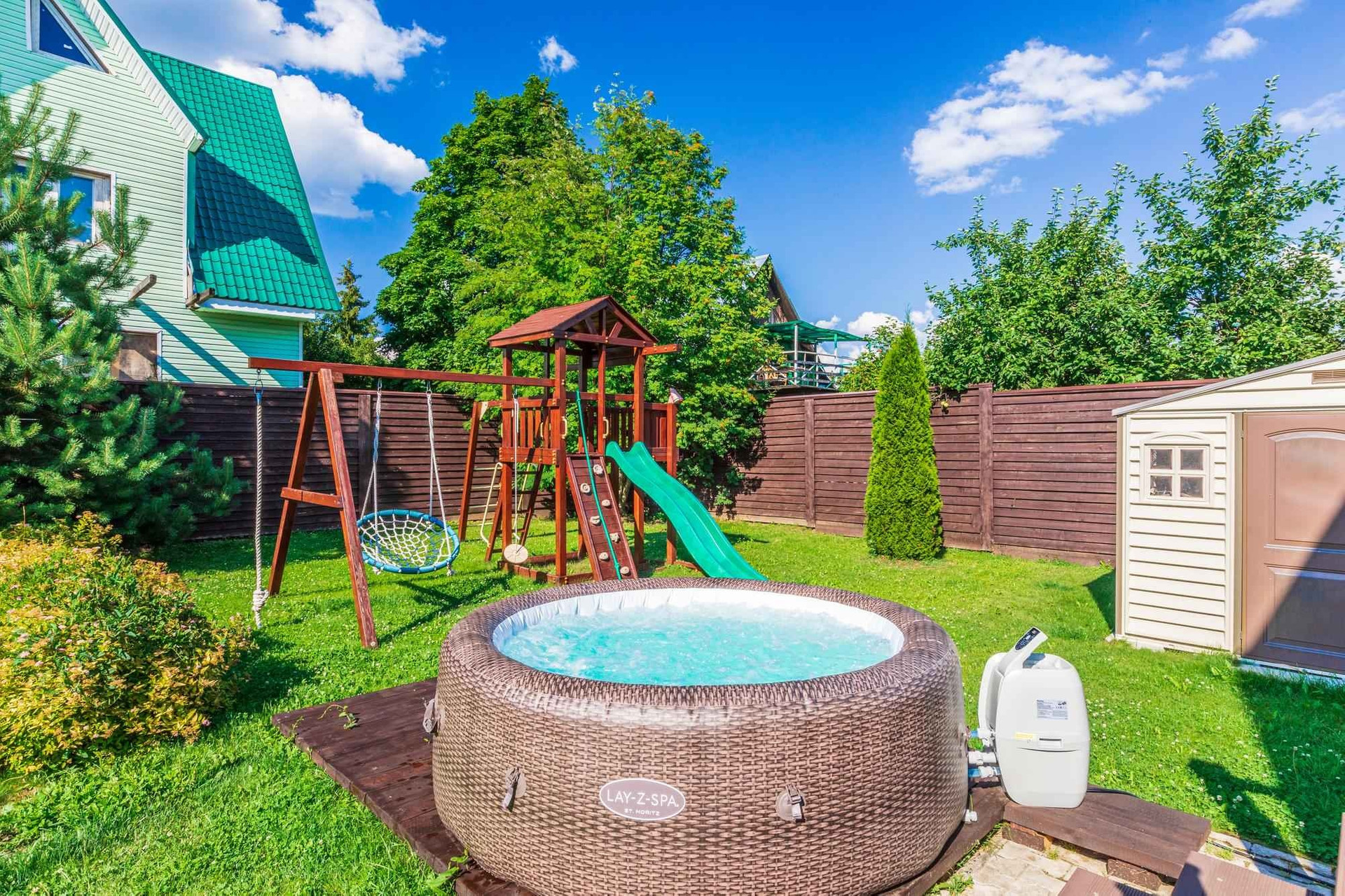 На участке расположен бассейн, зона отдыха/барбекю.