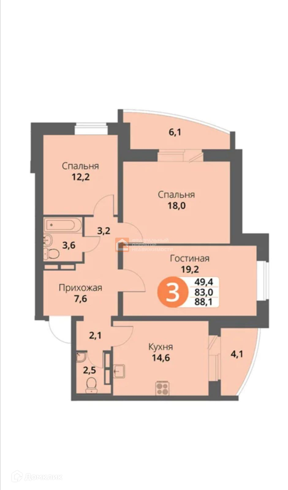 Количество комнат 3