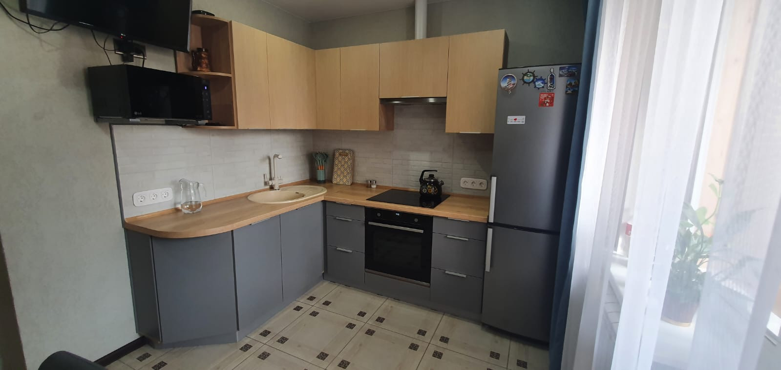 Квартира находится на 7 этаже, солнечная сторона, не угловая. Заменены все двери, установлены пластиковые окна, на балконах жалюзи. В коридоре и на кухне керамогранитная плитка, в зале ламинат. Ванная комната отремонтирована, установлена фильтра на горячую и холодную воду. Два балкона, разделены и отделаны деревом, а так же утеплены, в 1 установлен теплый пол. Есть кондиционер,спутниковая тарелка, много дополнительный розеток. Кухонный гарнитур остается в квартире(без духовки и плиты), фурнитура Blum. Тихие соседи, во дворе детский садик и много площадок.