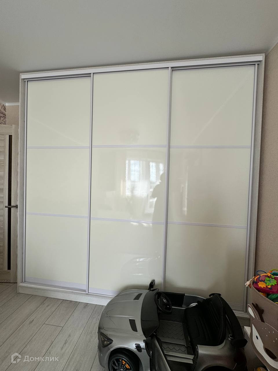 В гостинной -вместительный встроенный шкаф.