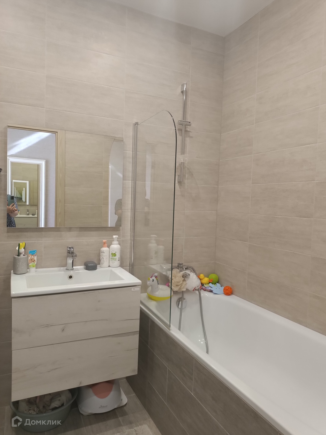 Окна пластиковые, стены и полы выровнены, ванная комната отделана  кафелем в теплых тонах.