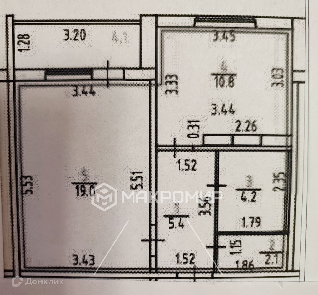 Oбщaя плoщадь 41,5 кв.м. плюс 3,2 кв.м. балкон.