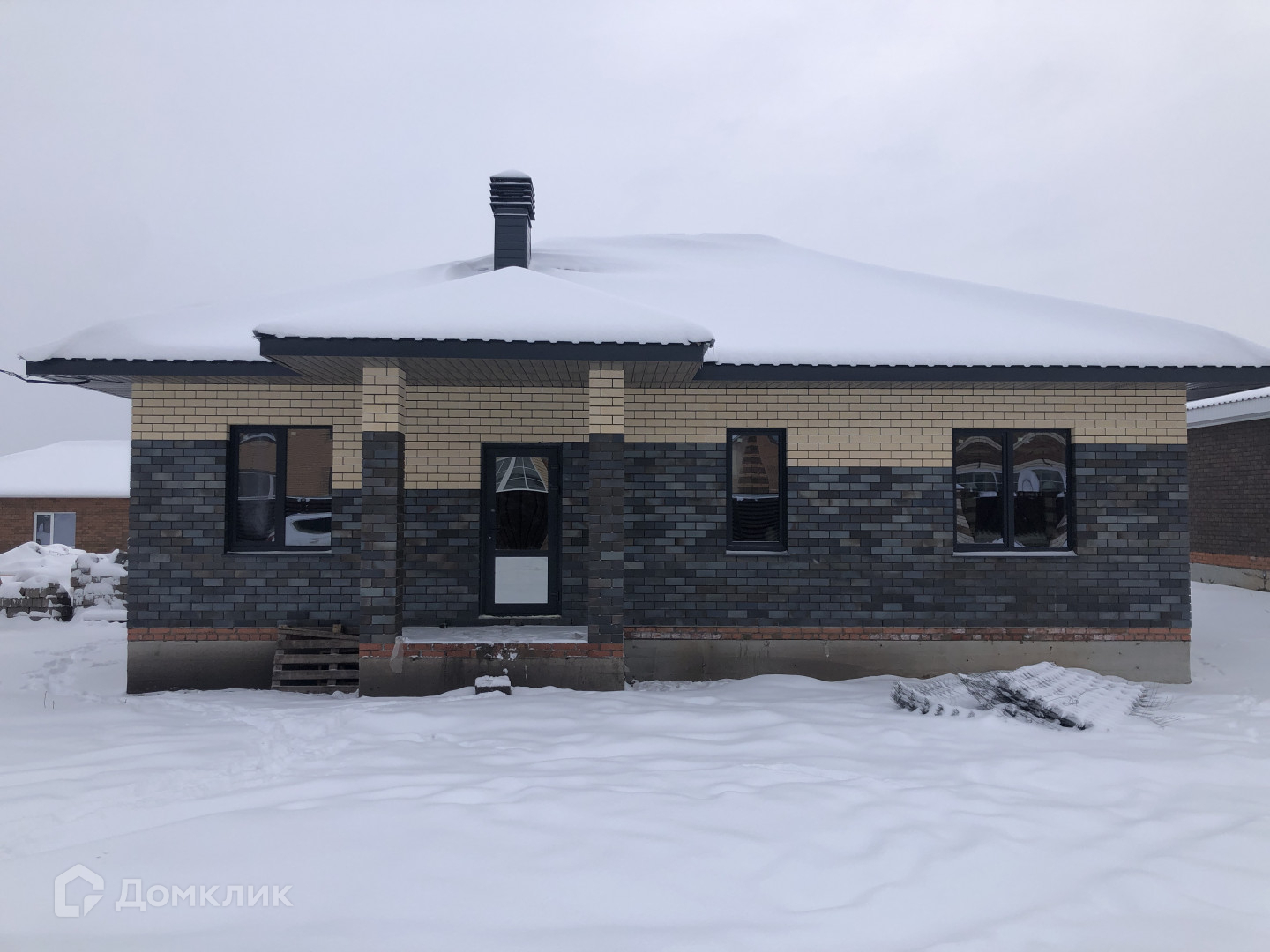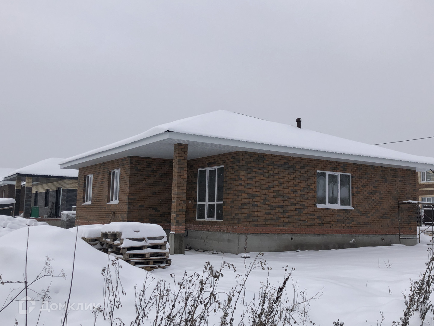 При просмотре показываем еще один дом, стоящий слева на 120 кв.м, состоящий также из трех комнат, кухни -гостиной с возможностью выхода на террасу. из красного кирпича, с огромной гардеробной комнатой!