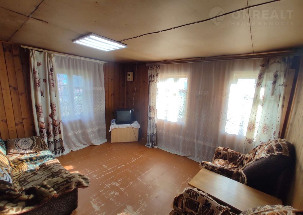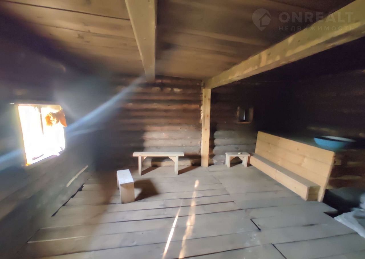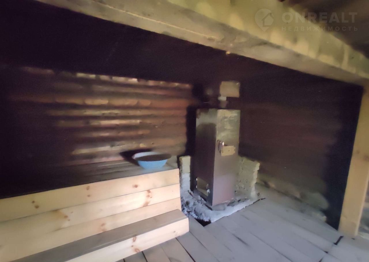 Материал стен - сруб, внутри отделан евровагонкой, перекрытия деревянные. На первом этаже расположены: зал, спальня, кухня. На верхний этаж попадаем через веранду по деревянной лестнице, где расположены 2 комнаты и просторная светлая лоджия с остеклением. Потолок и полы утеплены керамзитной крошкой.