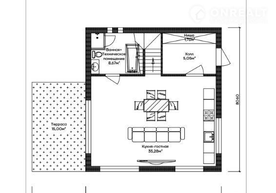 - Просторная гостиная со встроенной кухней для теплых вечеров