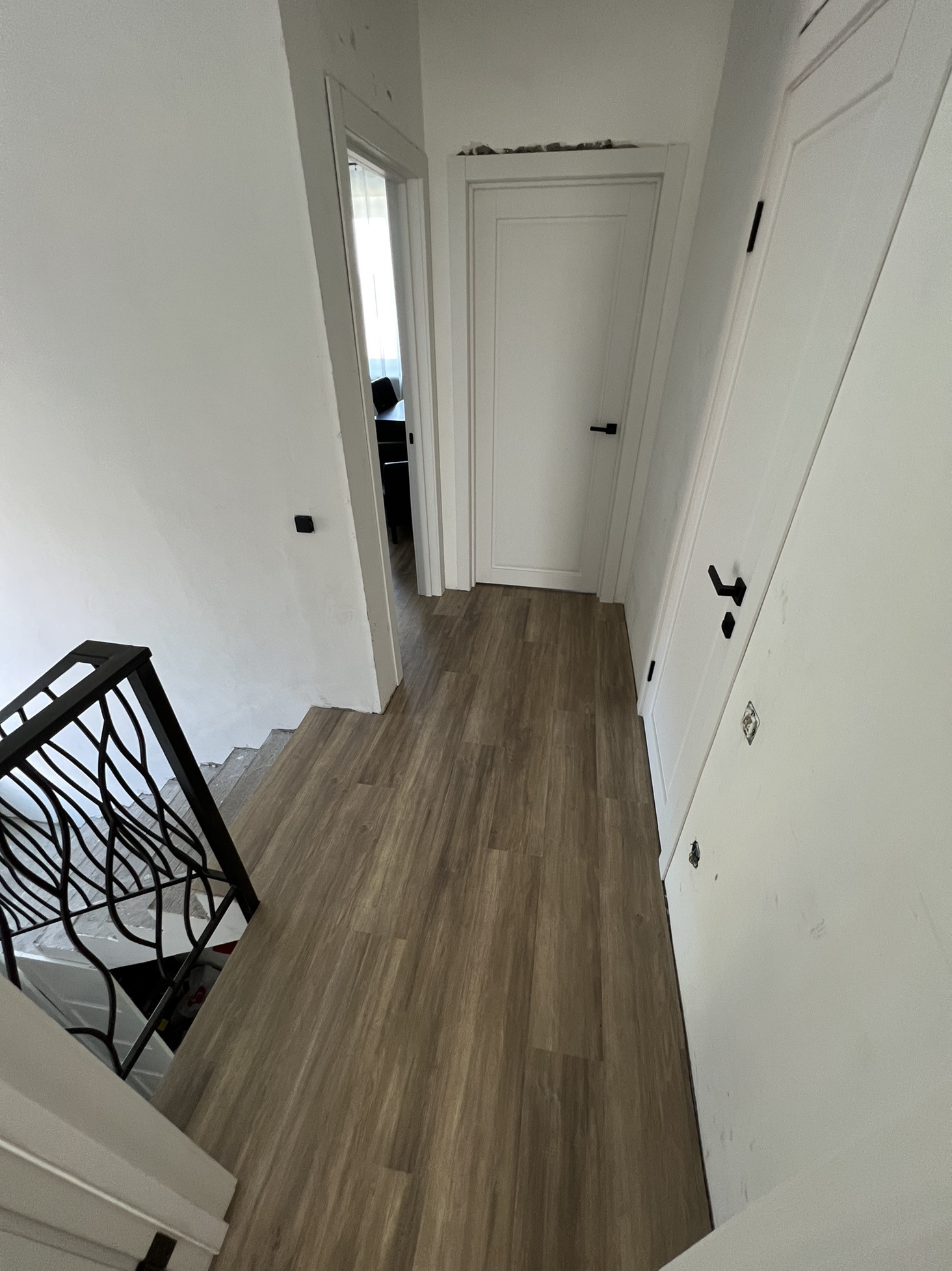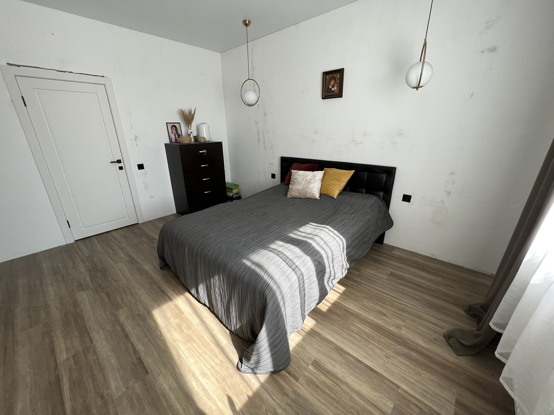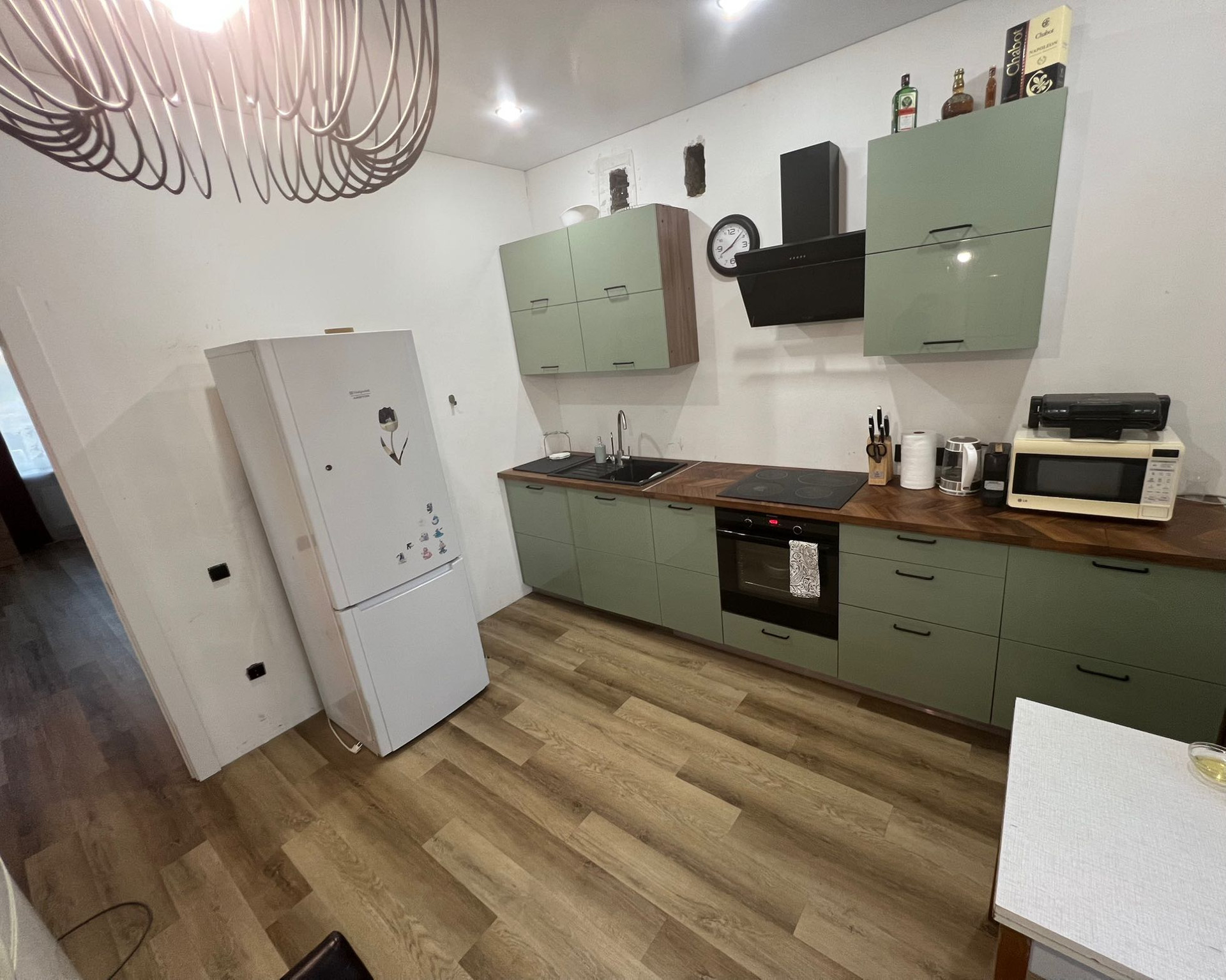 Стильные дорогие двери, напольное покрытие - кварцвинил, премиум класса, не боится воды, на втором этаже ламинат, натяжные потолки, встроенная кухня. Вам остаётся только поклеить обои на свой вкус.