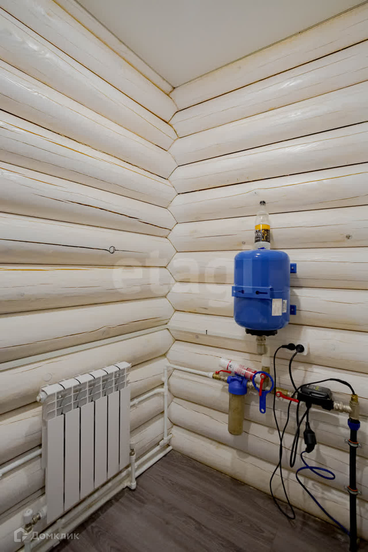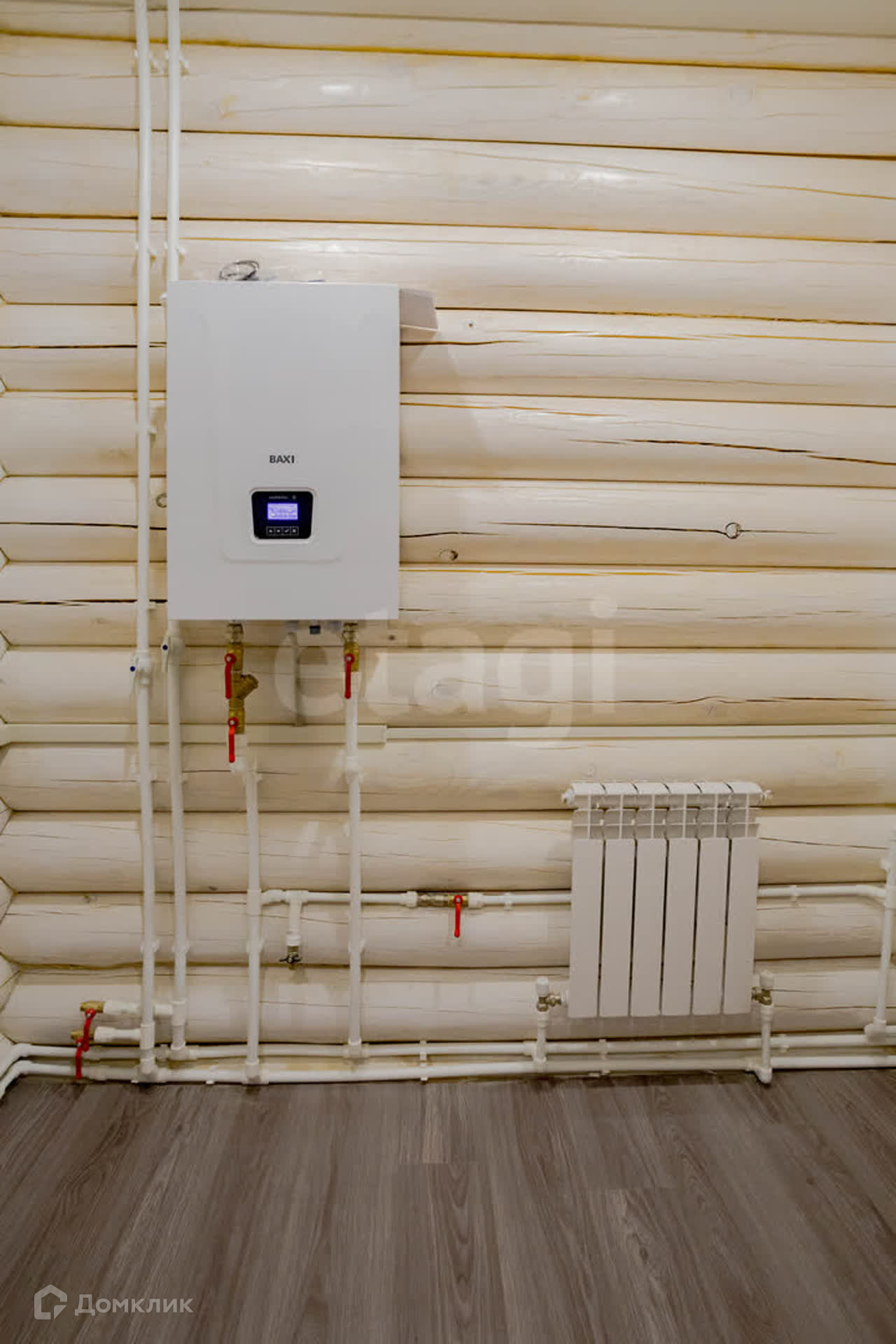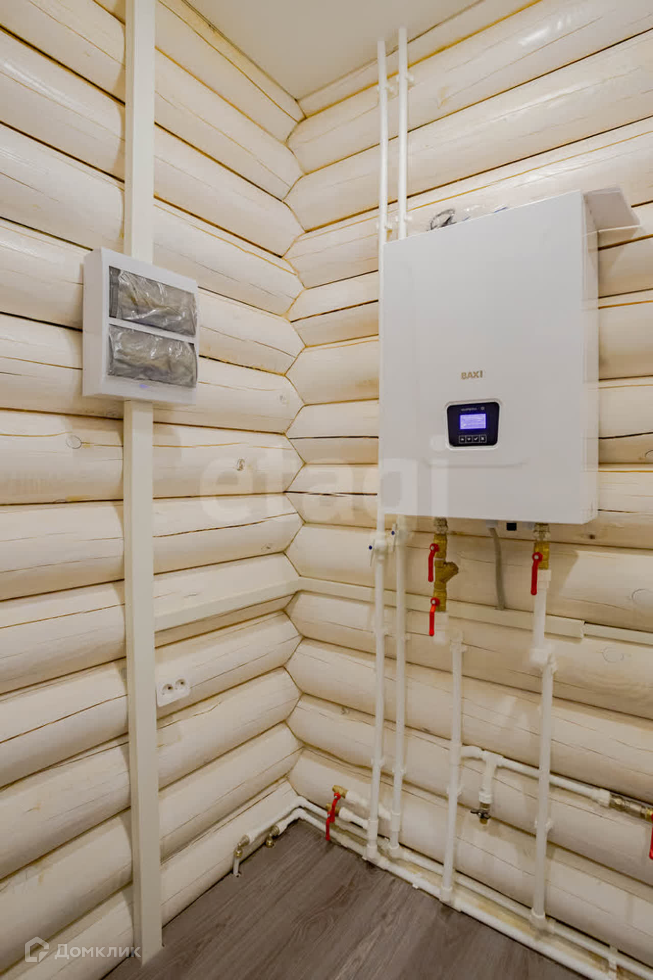 В доме установлен электрокотёл BAXI на 12 кВт, сделана разводка труб и установка радиаторов отопления, на потолках - натяжные потолки, на полу - ламинат, канализация - септик, вода от колодца подведена от насосной станции. Также установлена утепленная металлическая входная дверь, качественные межкомнатные двери, двухкамерные пластиковые окна.