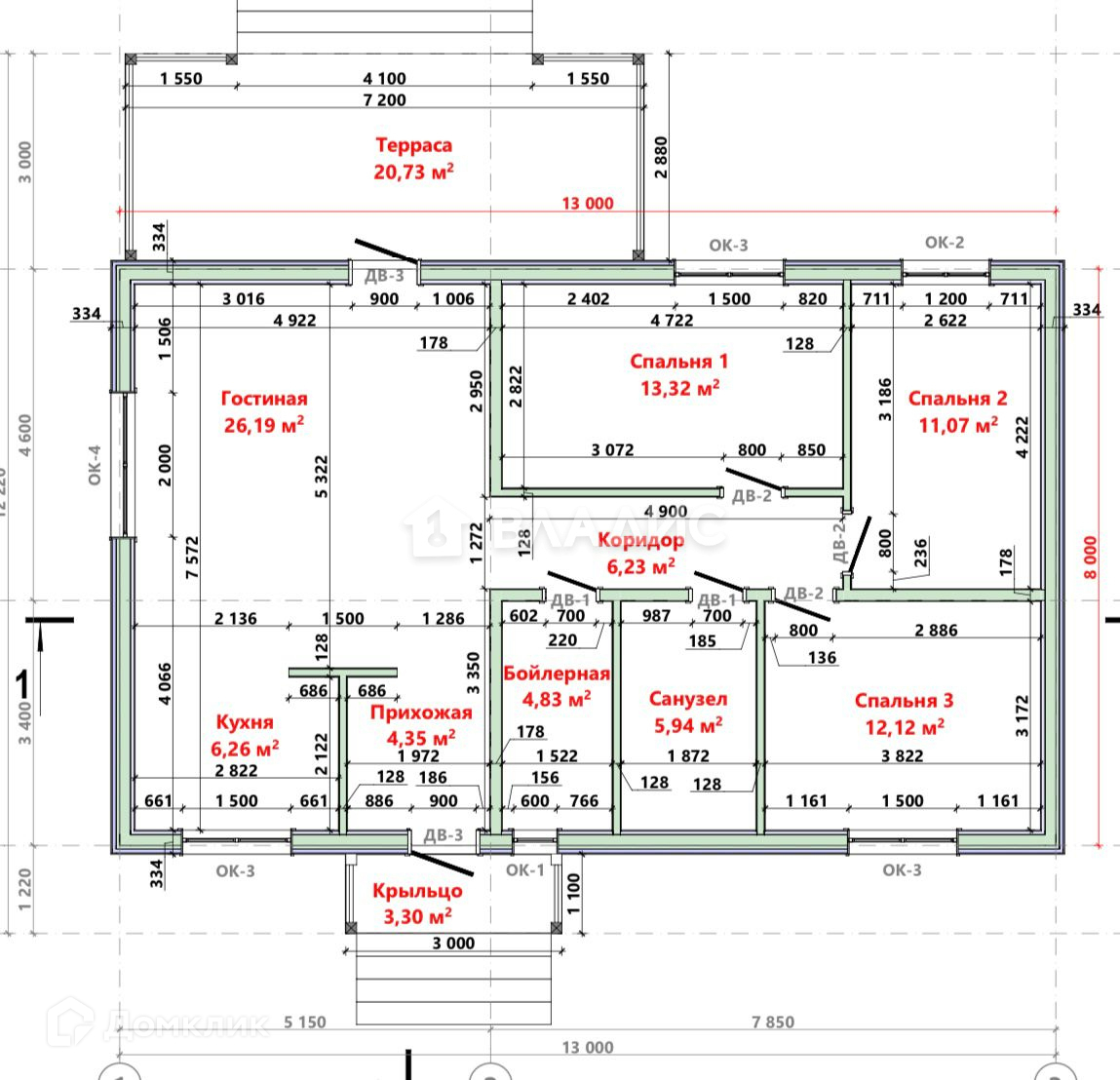 Общая площадь 124 м2