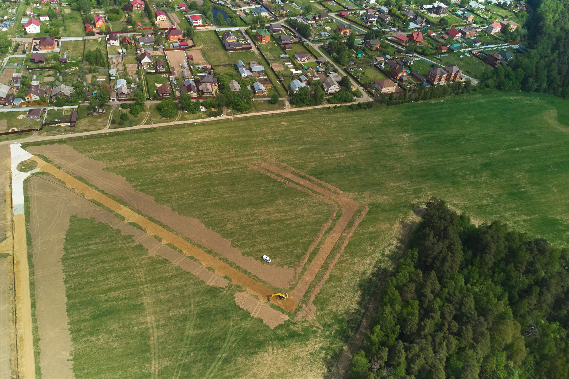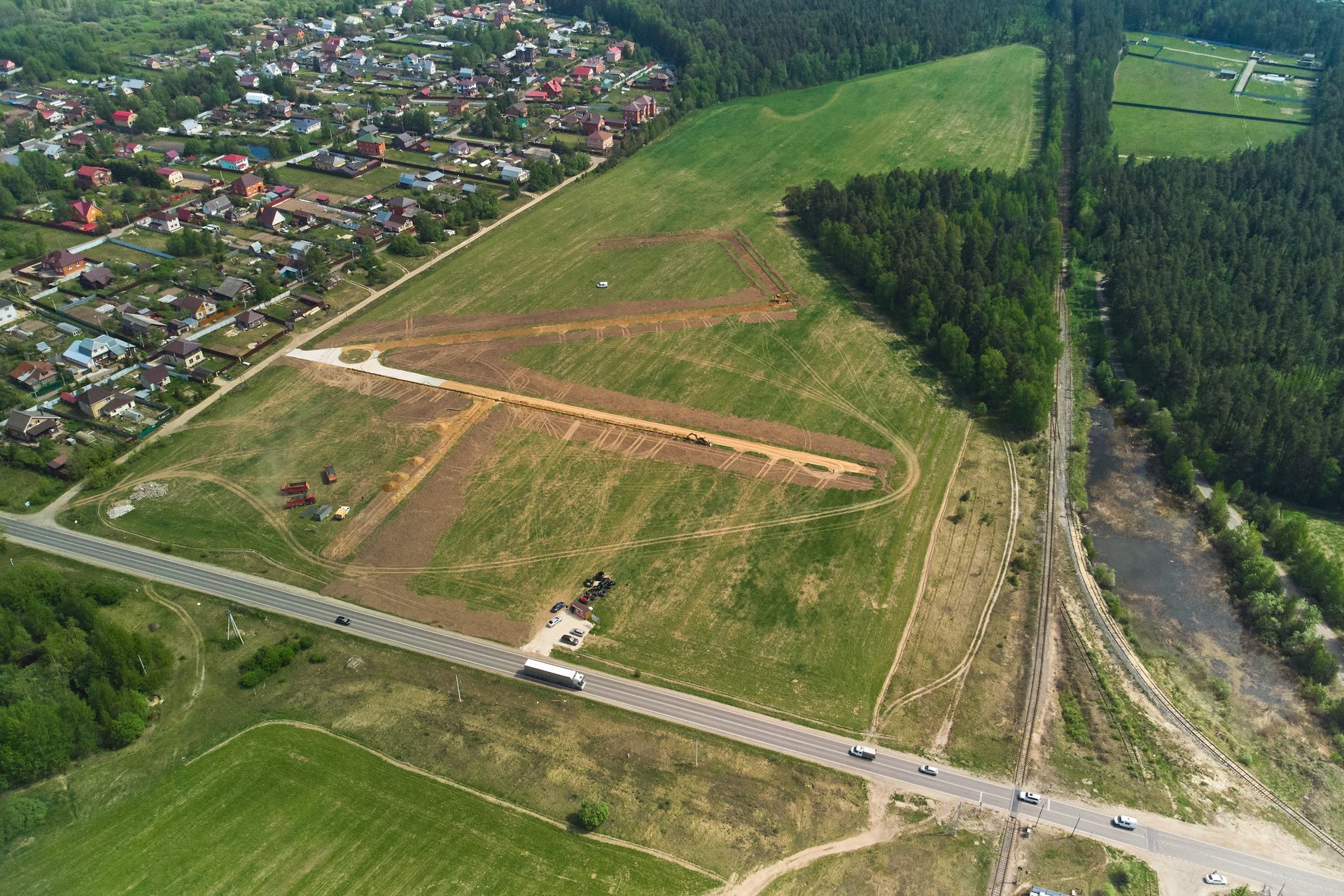 Большая нарезка участков в окружении леса с развитой инфраструктурой.
