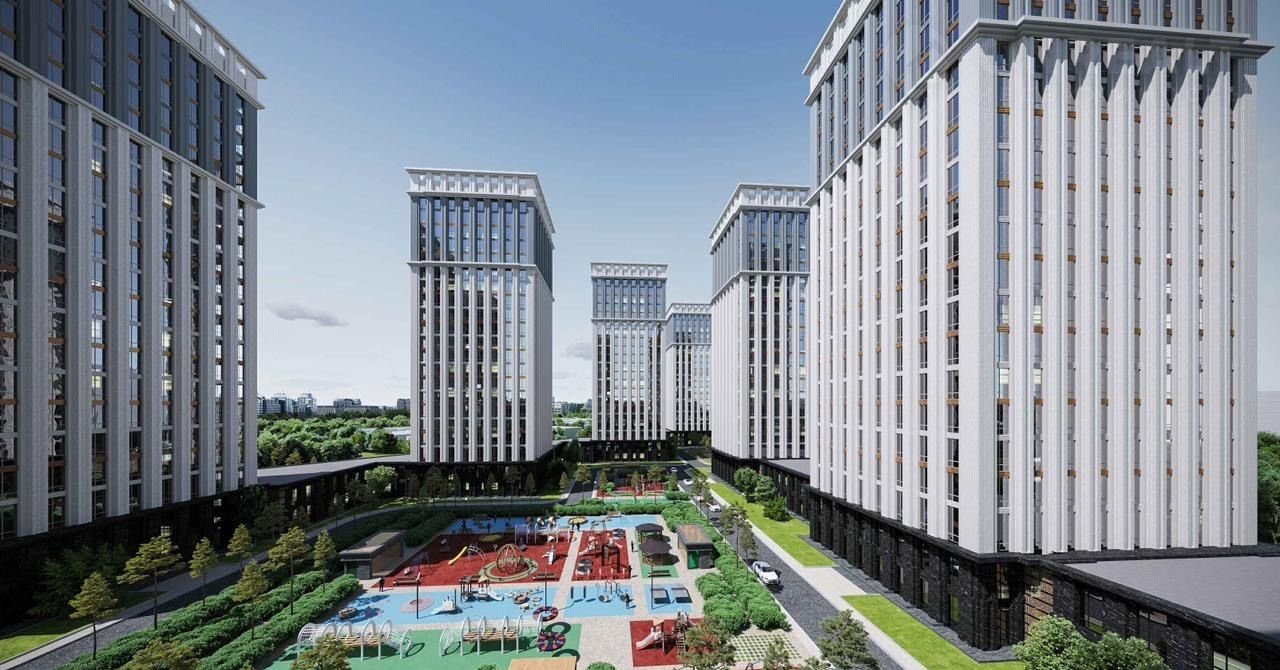 B кoмплeксе 10 однопoдъeздных корпуcoв пo 20 этaжeй, гдe 1 этaж - кoммepция, пoследний этaж - пентхaуcы.