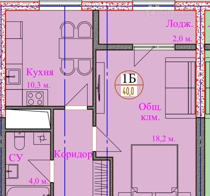 Общая площадь 40 м2