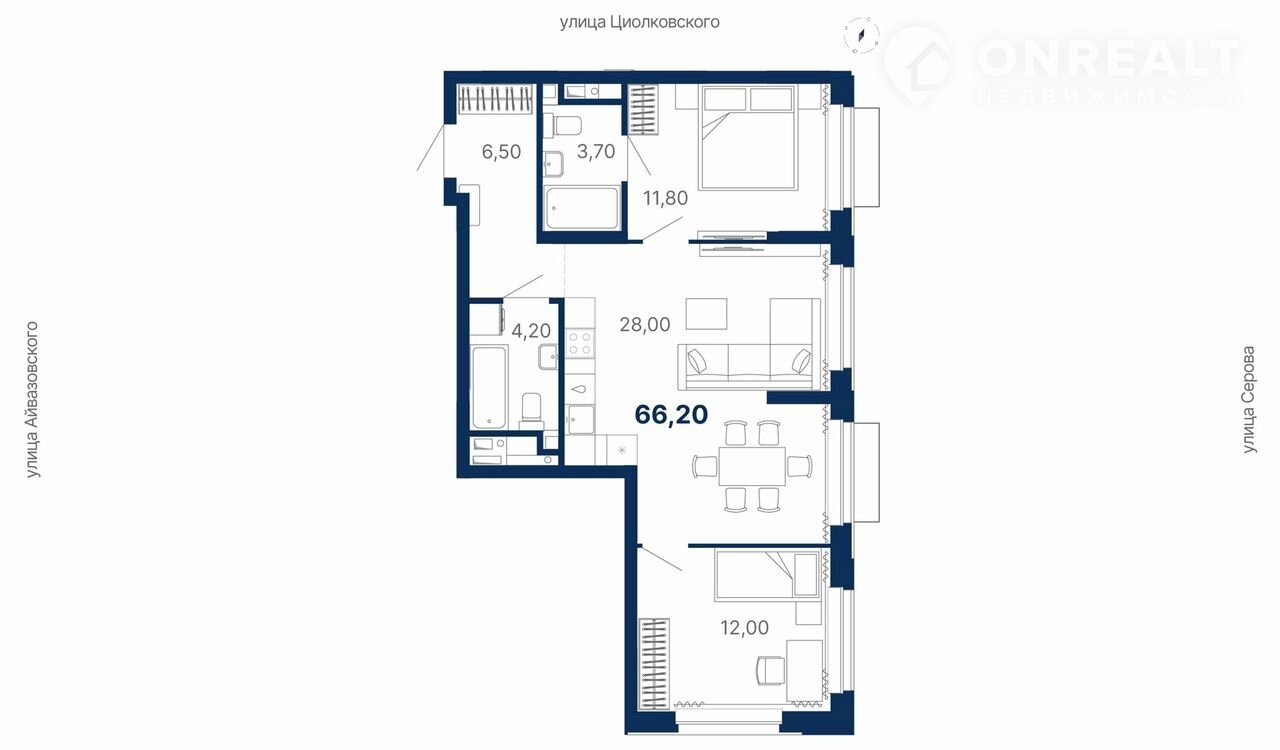 Общая площадь 66.2 м2