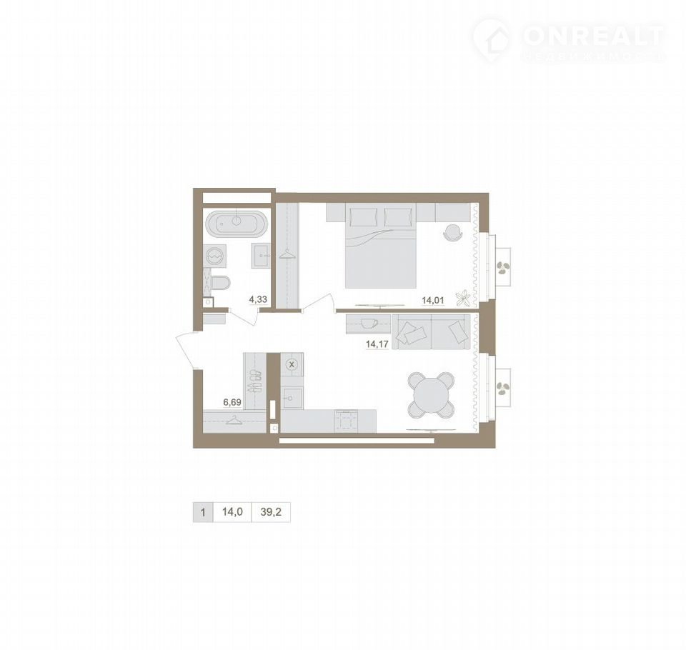 Общая площадь 39.2 м2