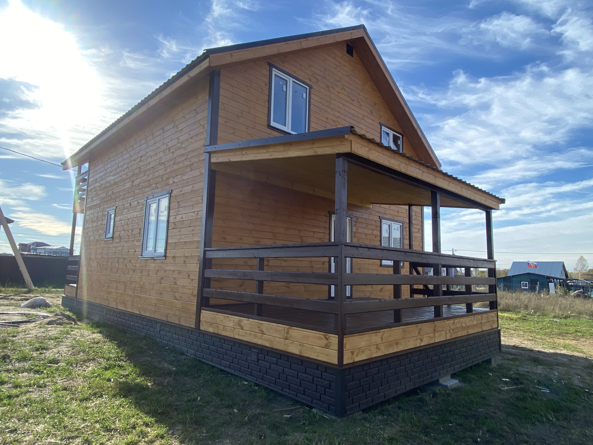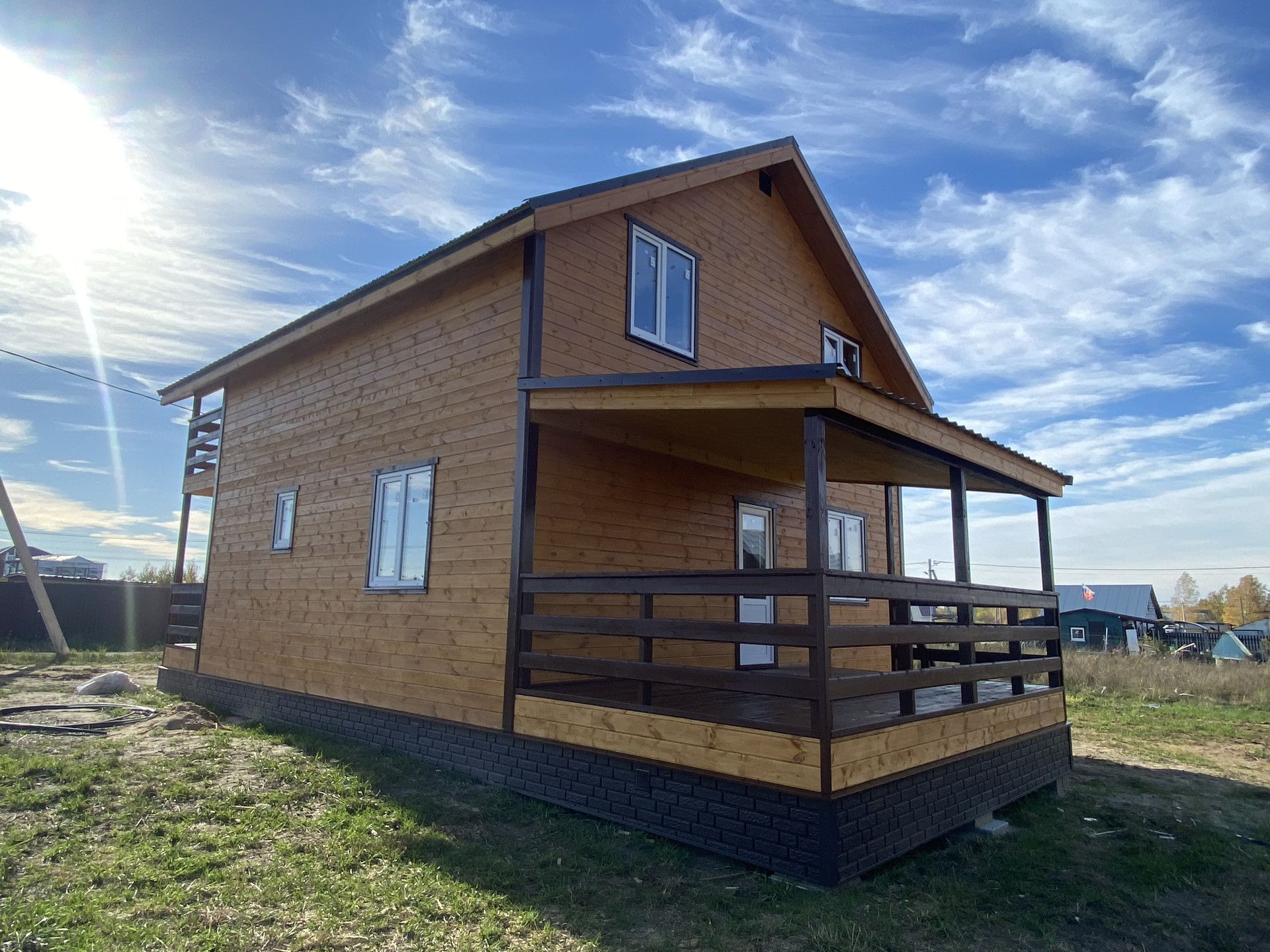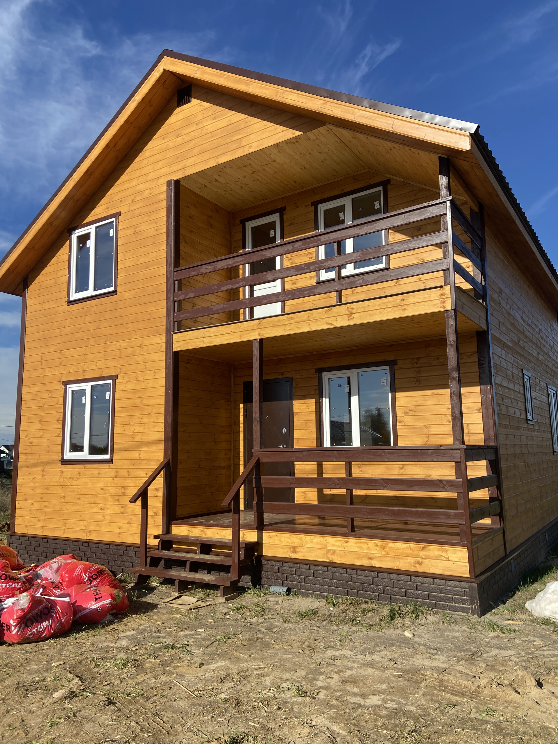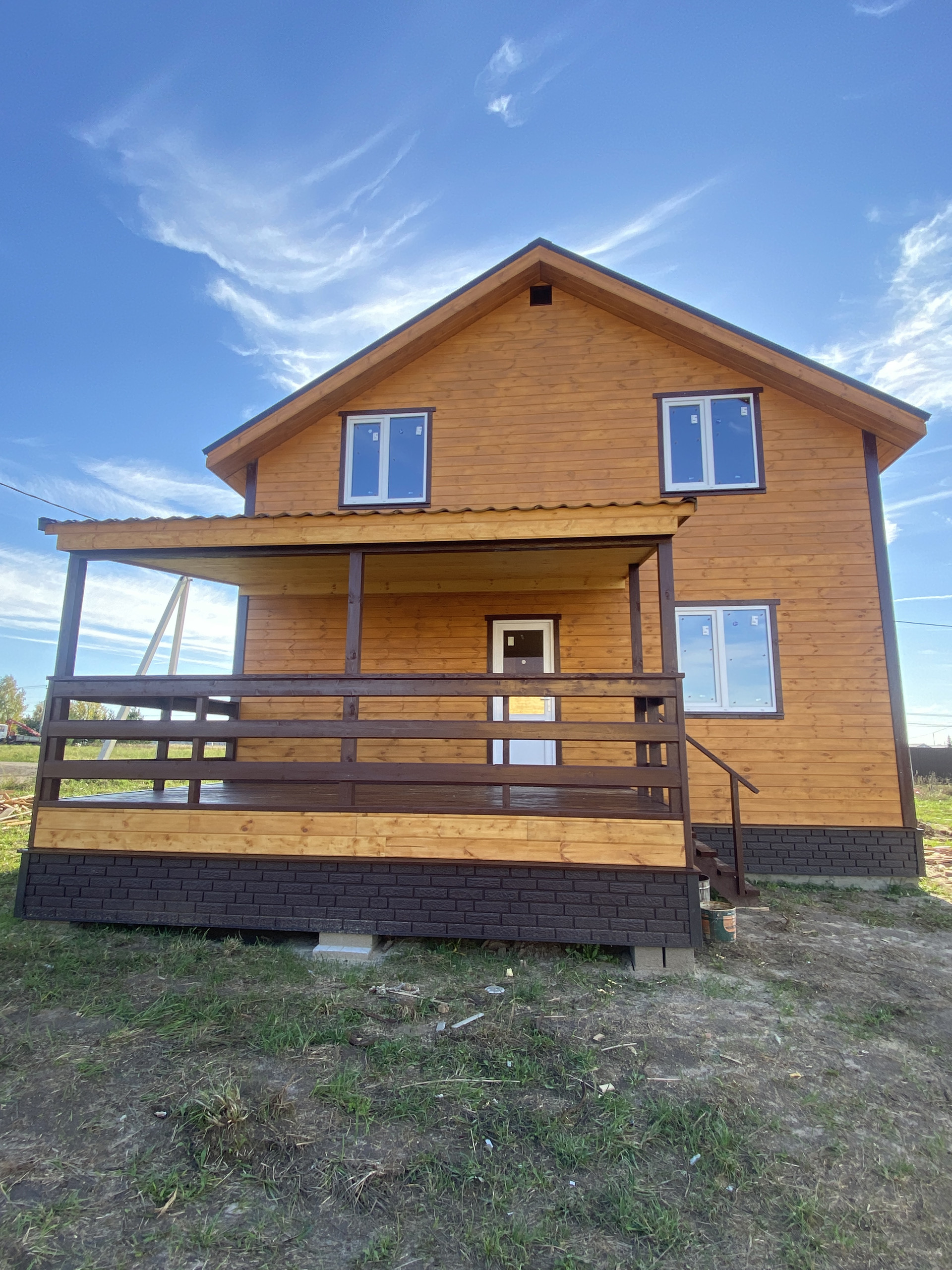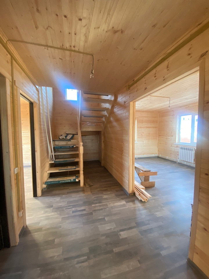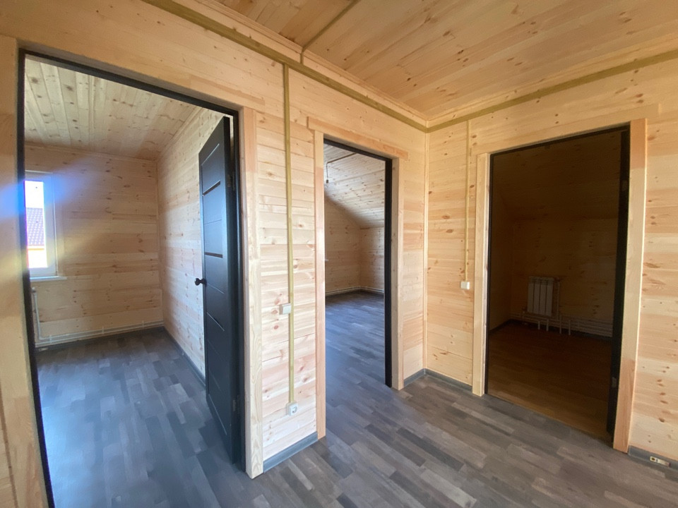 Дом 2022 года постройки, новы, современный. На первом этаже просторная кухня гостиная, спальня, бойлерная и сан. узел. На 2 этаже холл, 3 изолированные комнаты, гардеробная и сан. узел. На 2 этаже выход на лоджию, аналогичная лоджия или терраса также размещена на первом этаже. Из гостиной выход на просторную и вместительную террасу.