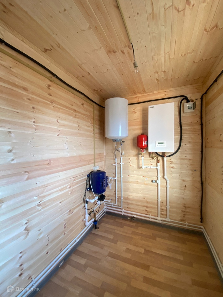 В дом заведены все коммуникации - вода из скважины, канализация септик, электричество 15 КВ, отопление разведено от электрокотла.