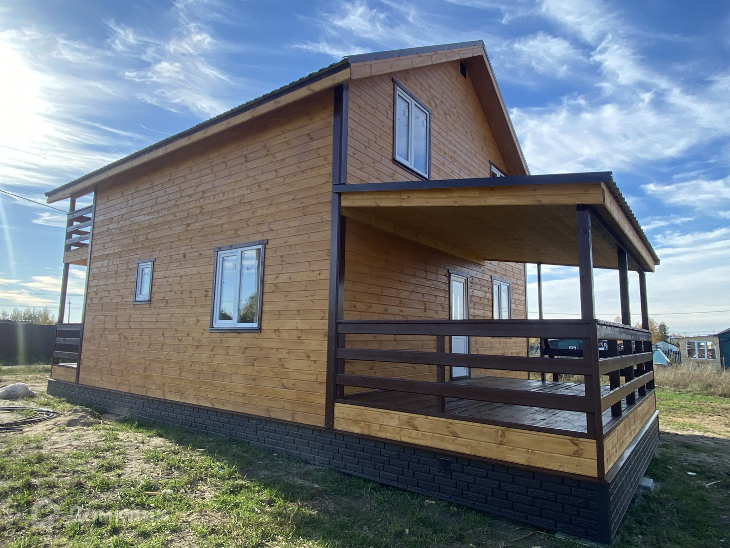 Дом 2022 года постройки, новы, современный. На первом этаже просторная кухня гостиная, спальня, бойлерная и сан. узел. На 2 этаже холл, 3 изолированные комнаты, гардеробная и сан. узел. На 2 этаже выход на лоджию, аналогичная лоджия или терраса также размещена на первом этаже. Из гостиной выход на просторную и вместительную террасу.