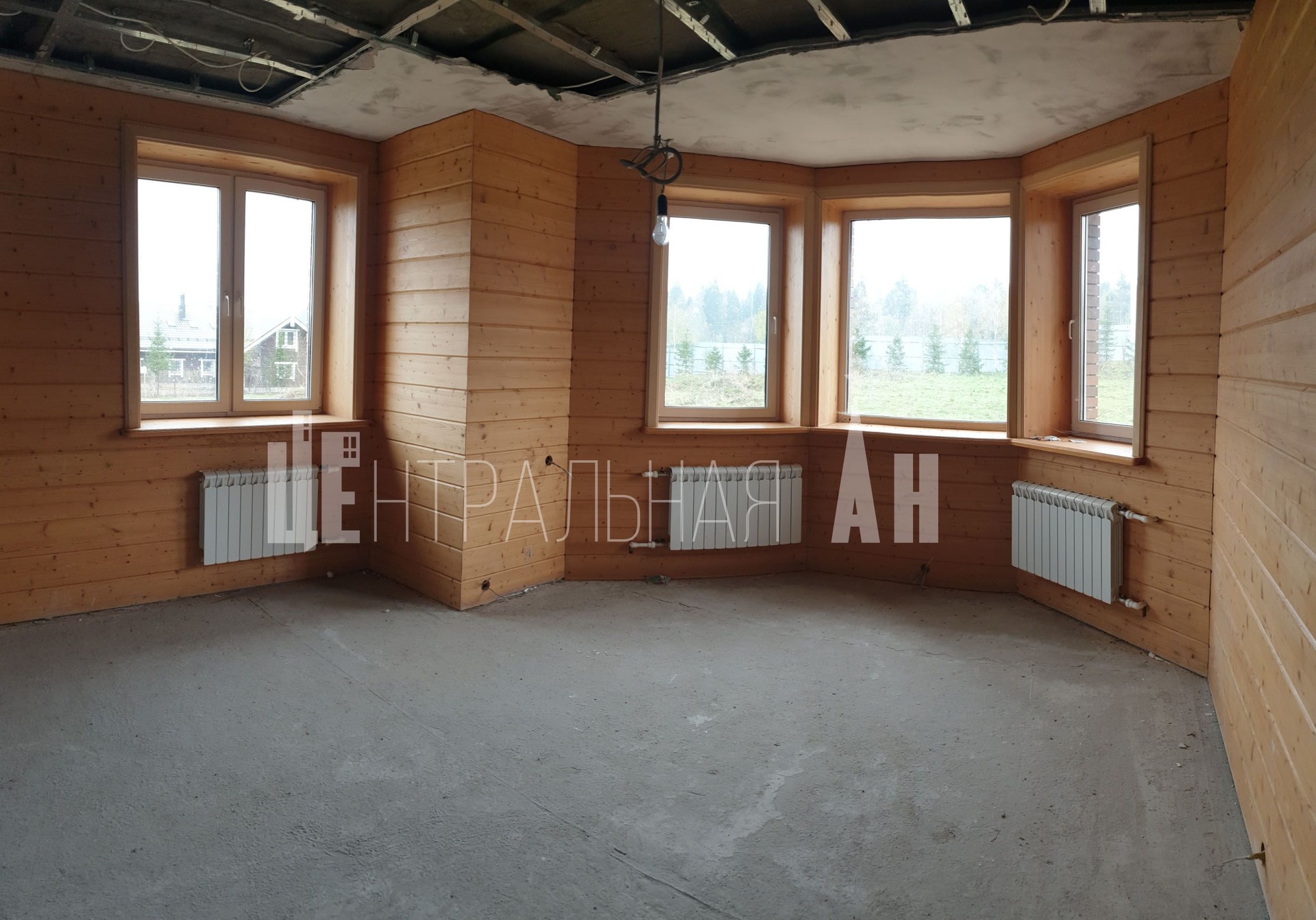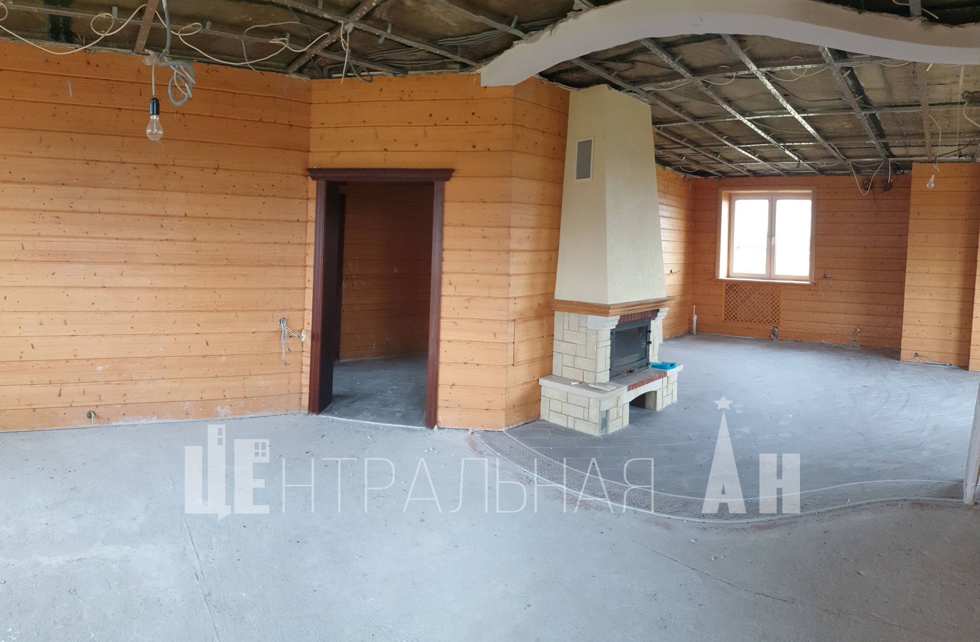 -Стеклопакеты 2-ух камерные  REHAU. Окна эркерные. Всего в доме  4 просторных комнаты, 2 санузла, огромный каминный зал с комнатой под кухню. Сделана полностью черновая отделка, проведено электричество, щиток заведен в дом. Установлена полностью сантехника. Камин сделан. Часть каминного зала уложена плиткой.