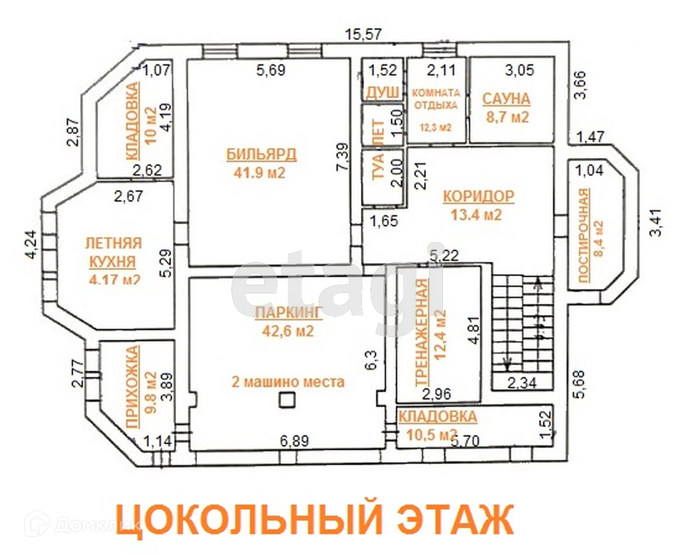 В цокольном этаже расположен паркинг на 2 машиноместа, предусмотрены места под душевые, туалет, прачечную, бильярдную, барную, тренажерную. Можно переиграть на свой вкус!