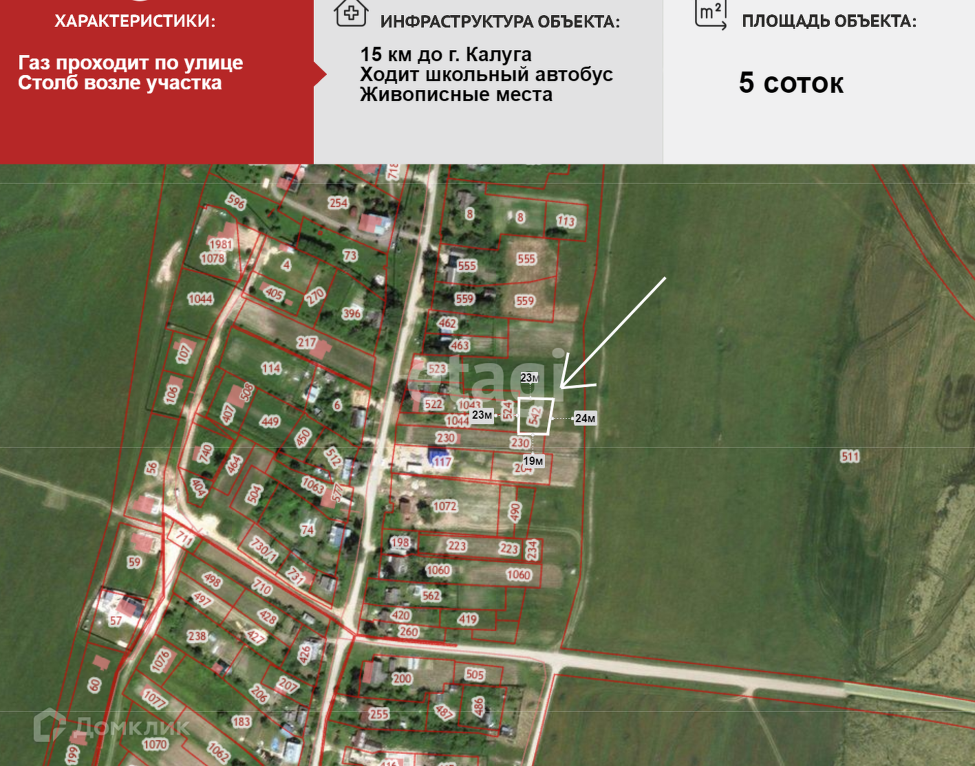 Продается участок 5 соток площадью, в деревне Животинки. На расстоянии 15 км от города Калуги. Участок ровный для строительства дома. Участок пока в аренде, назначение земли огородничество, после перевода в другую категорию цена увеличится.Есть возможность подключить все коммуникации, электрический столб, газ проходит по улице. В деревне есть интернет(стекловолокно). Из деревни Школьный автобус везет детей в школу. Есть магазин. Регулярно ездит общественный транспорт. Дороги в деревне Асфальт.