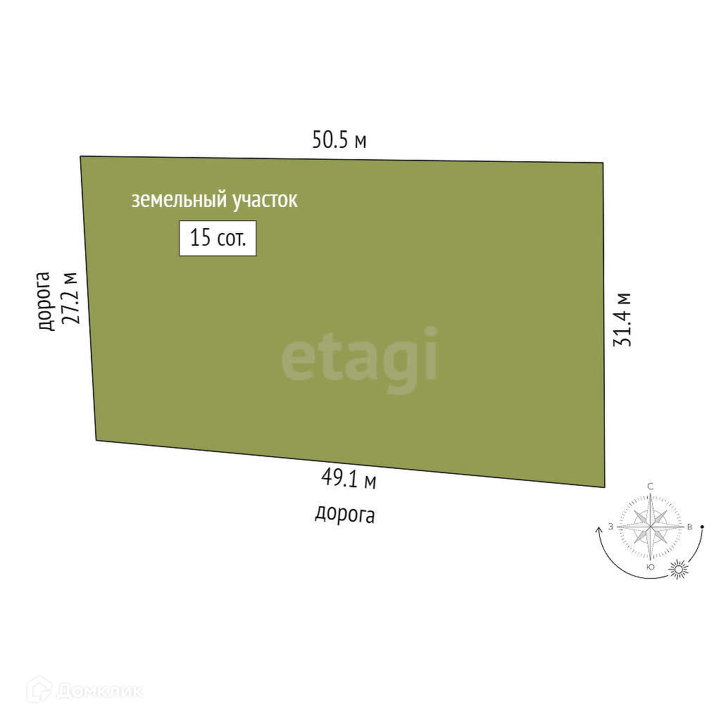 1. Площадь 15 соток;