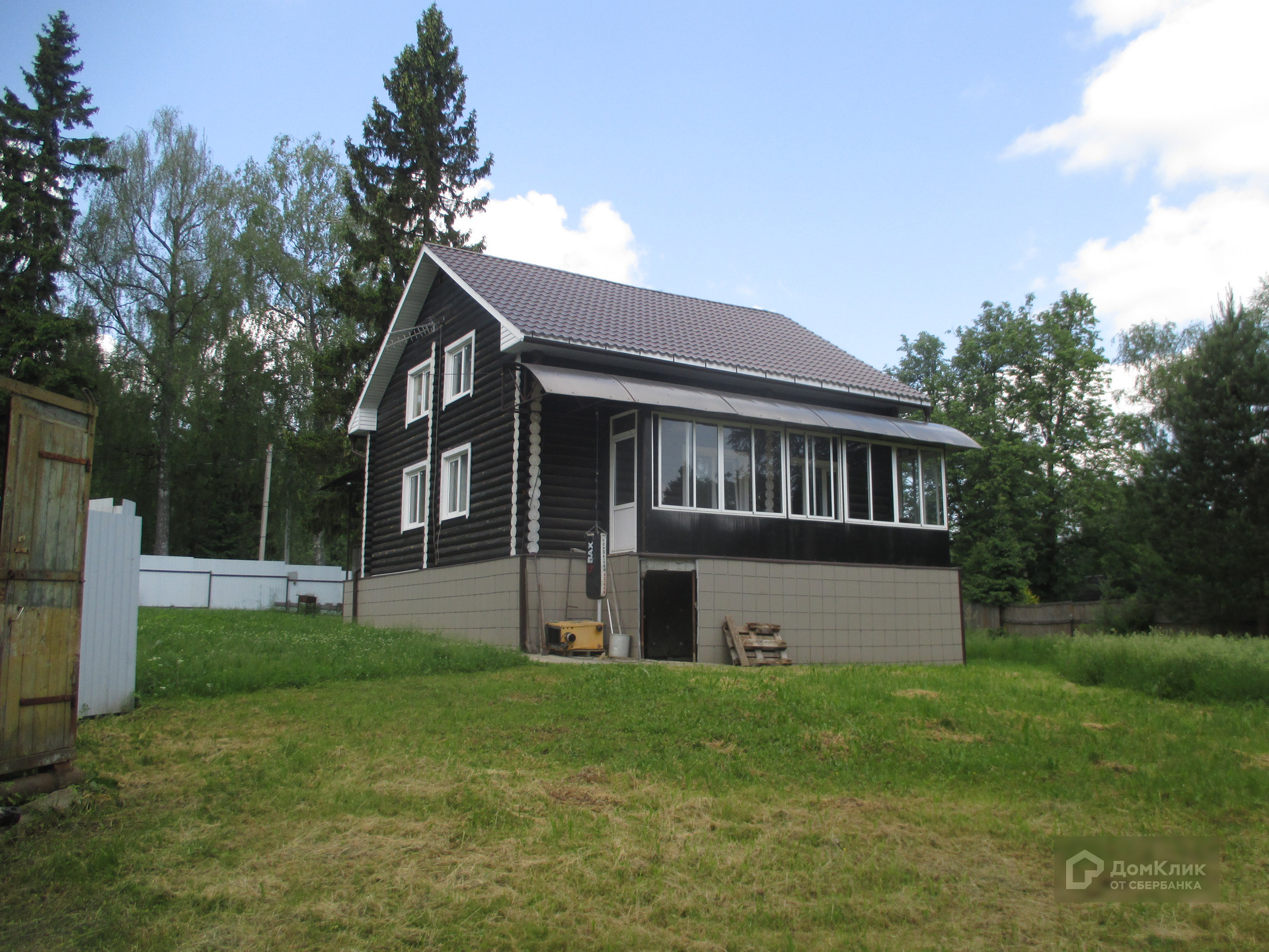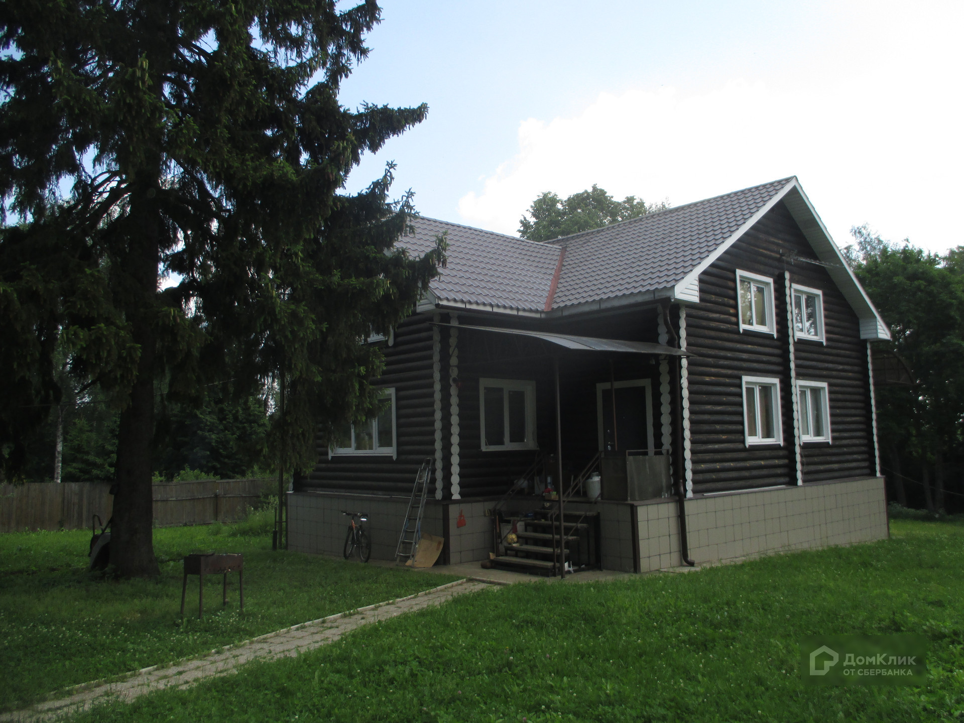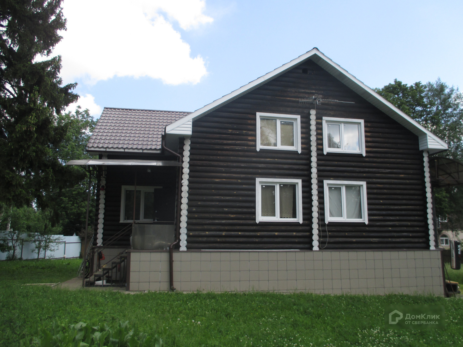 Дом построен в 2018 году. Стены сделаны из оцилиндрованного бревна. Фундамент ленточный. Крыша покрыта металлочерепицей.