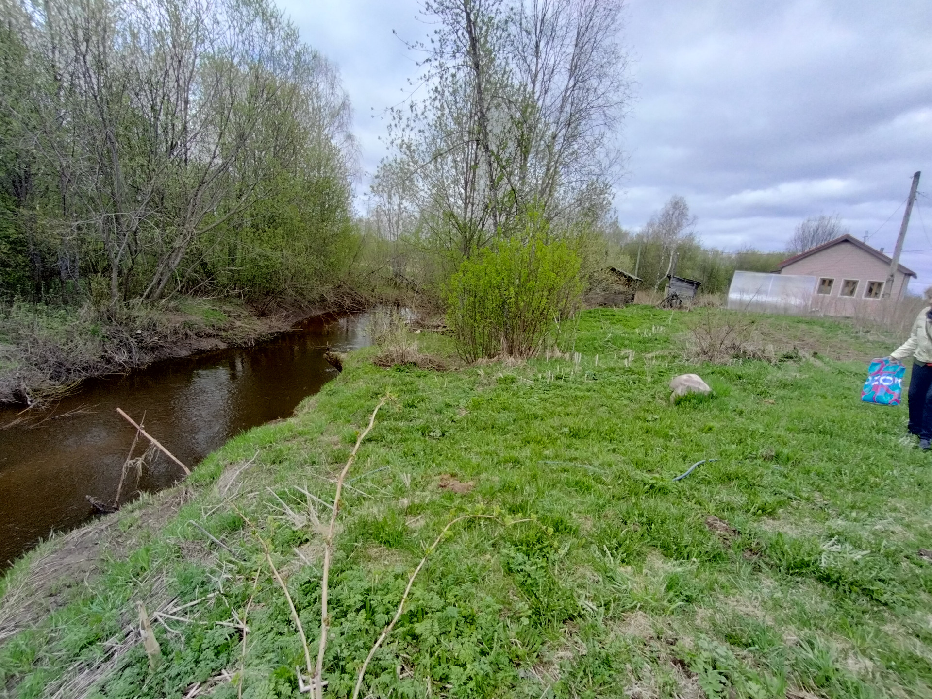 На участке 9 соток имеется баня на берегу речки (рыбалка!), теплица,