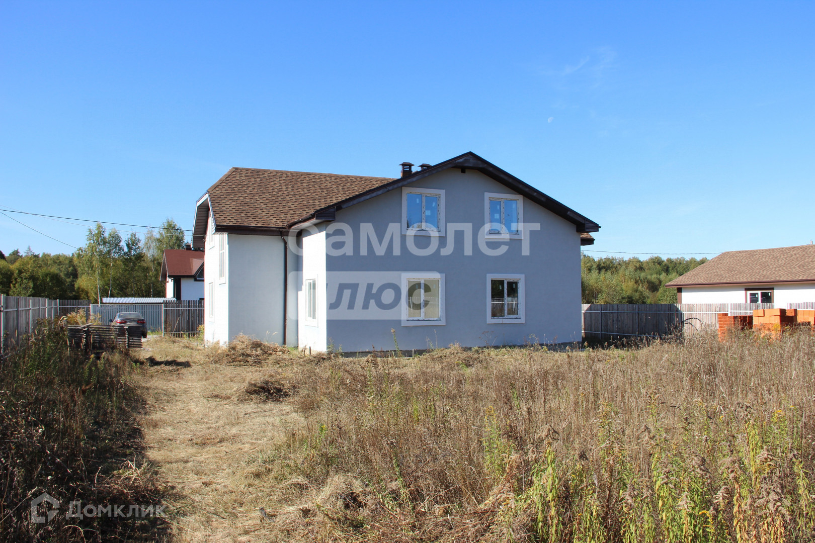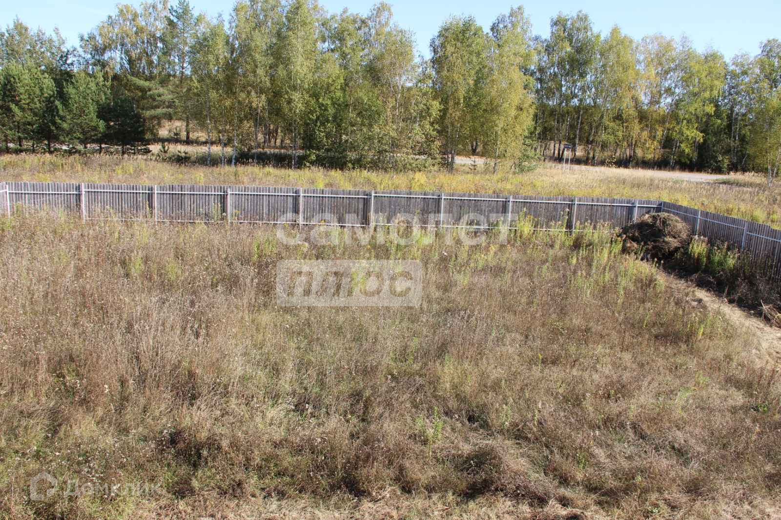 Ровный участок, без уклона обнесен забором.
