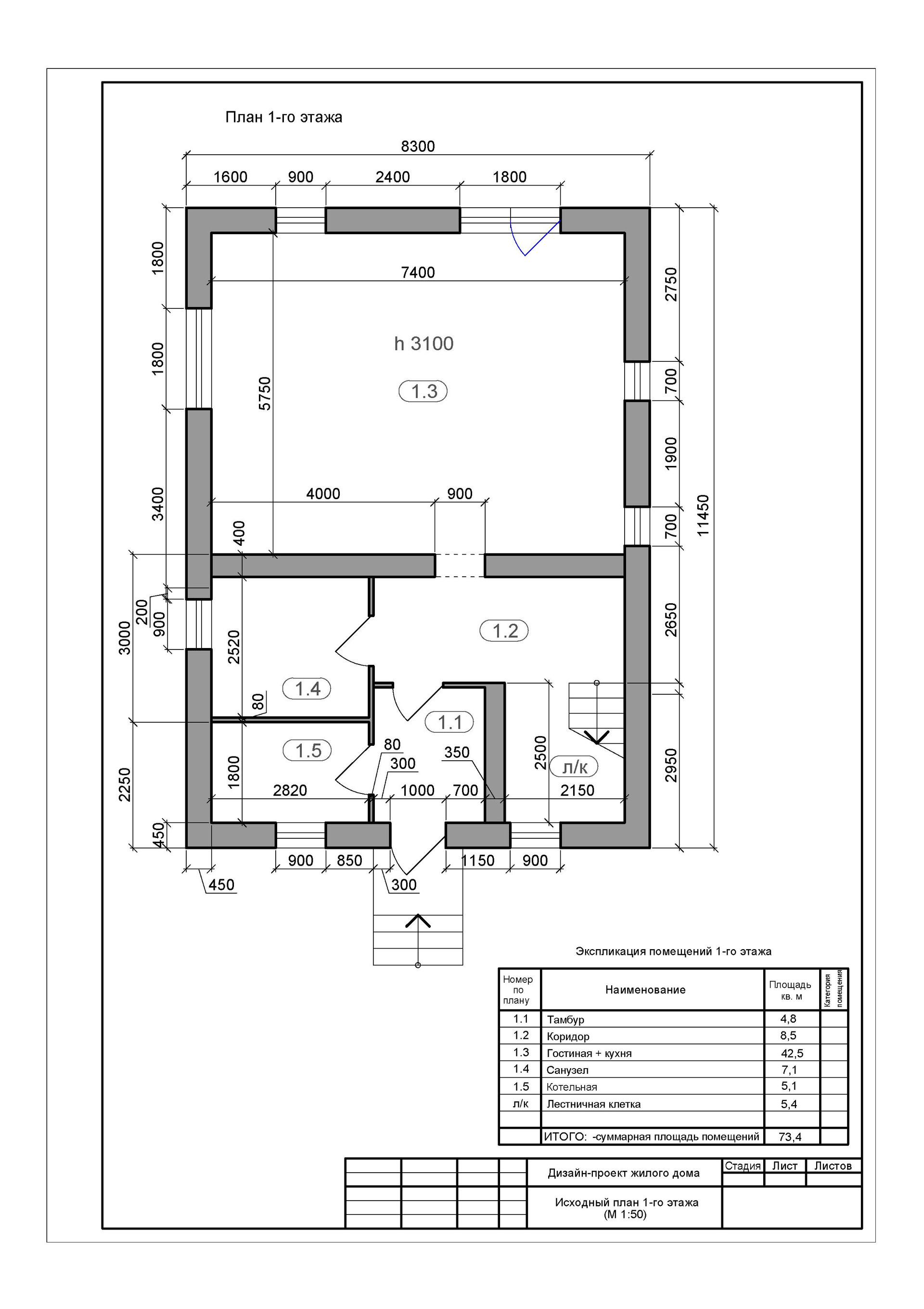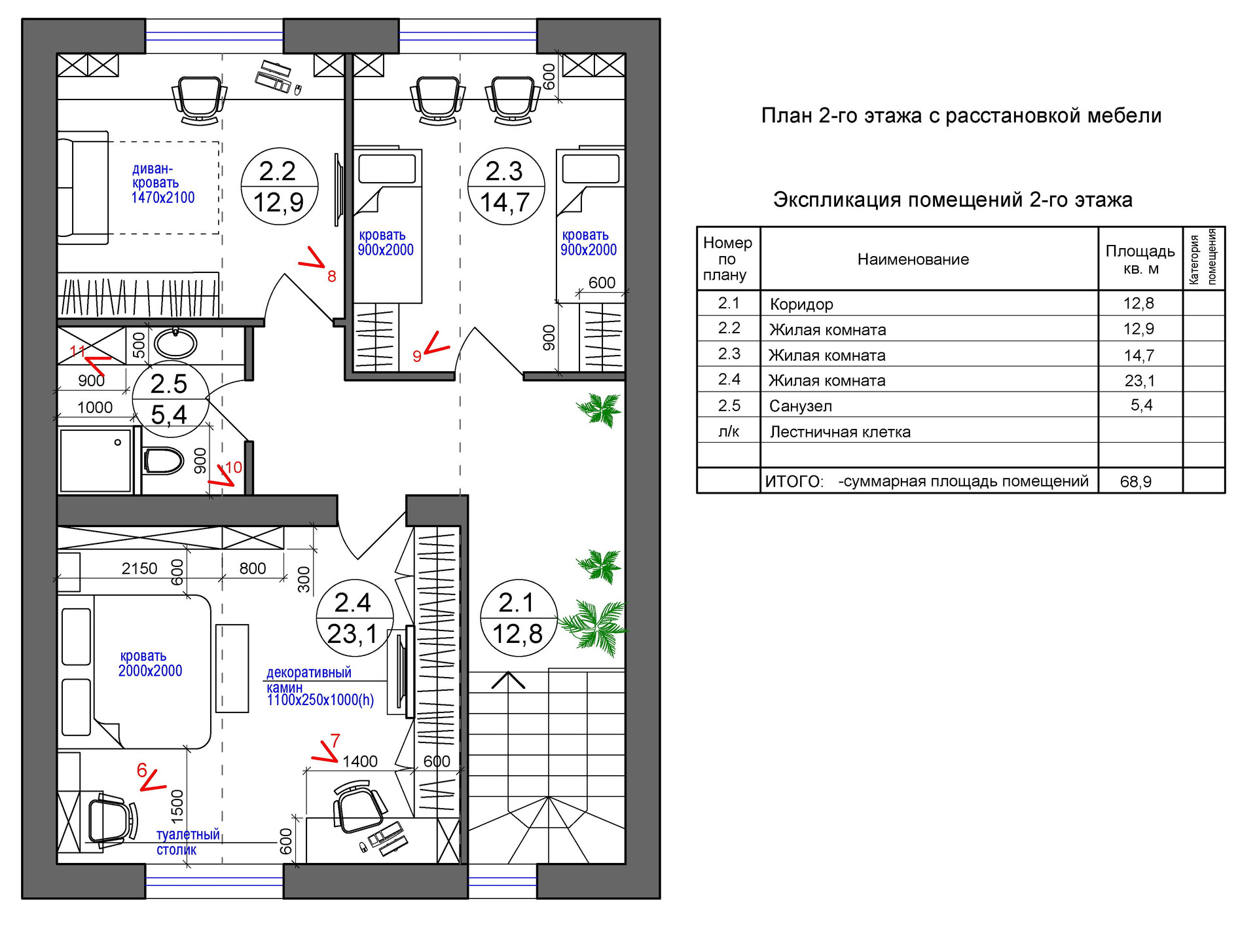 Межэтажная лестница - да (пеноблок + дерево)