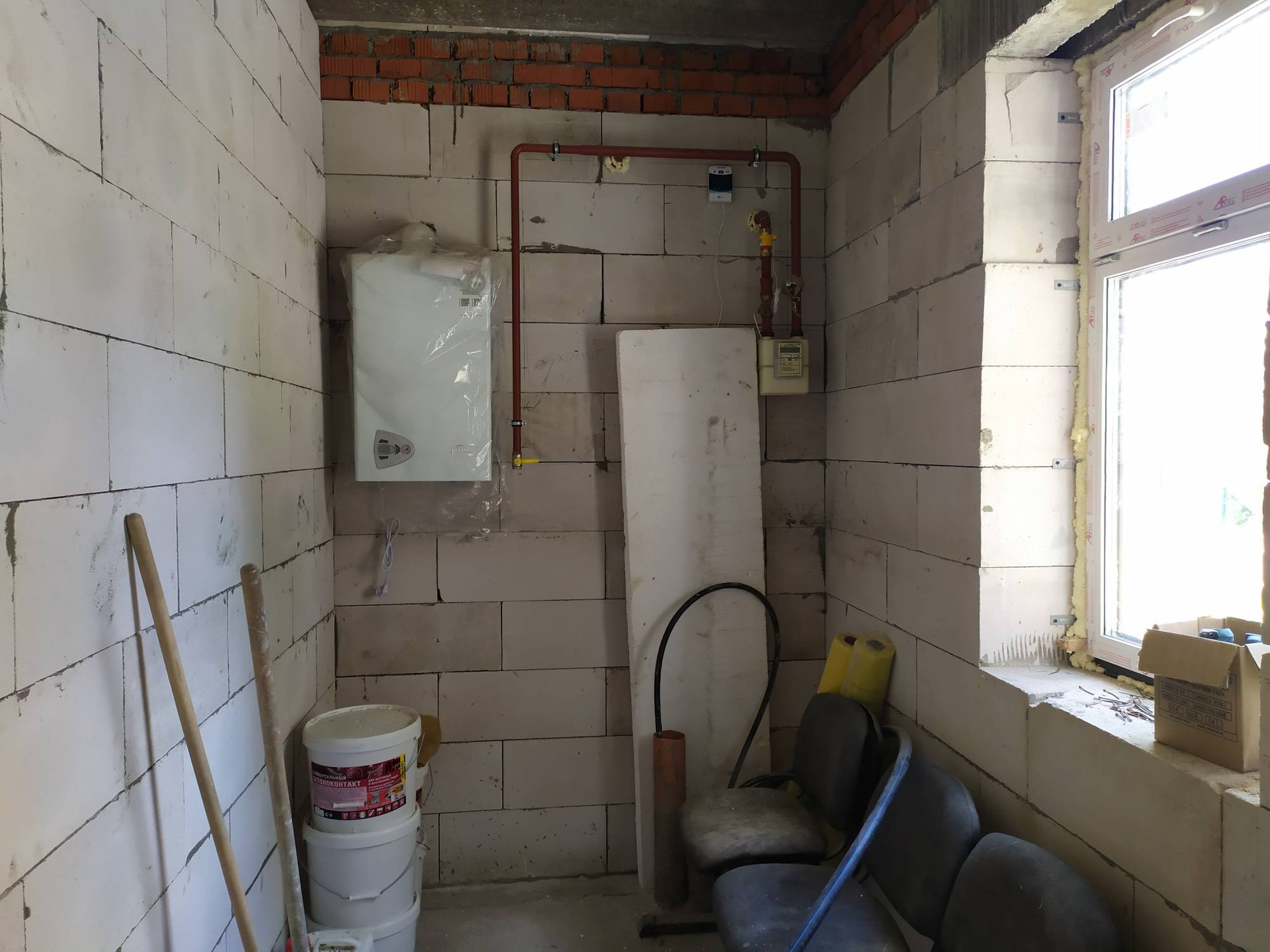 -Установлен  2-х контурный газовый котел;
