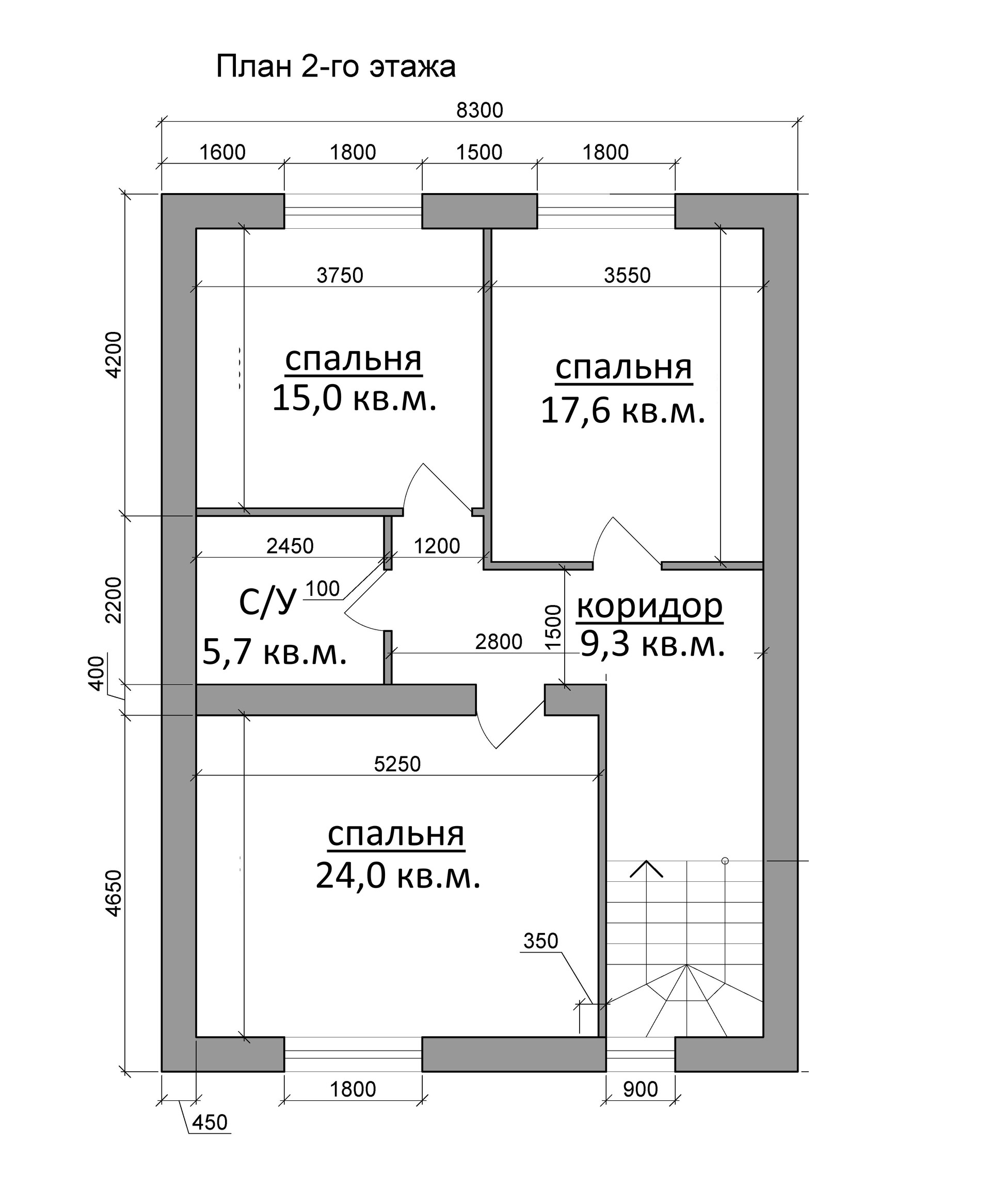 Два надземных этажа (первый этаж полномерный, второй этаж - мансарда высотой 2- 4,8 метра)