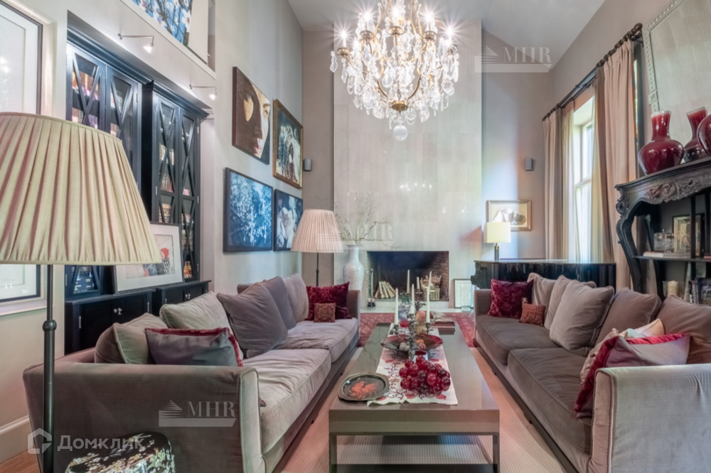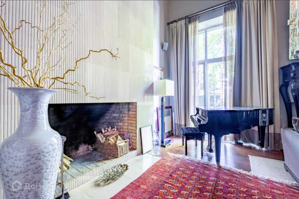 При отделке были использованы высококачественные натуральные материалы европейского качества. Интерьер в стиле английской классики воплощен дизайнером Альбиной Назимовой. В гостиной с высотой потолка 6 метров на всю высоту стены, где расположен огромный открытый камин, выполнено декоративное панно из натурального мрамора. В доме современное панорамное остекление из дуба.