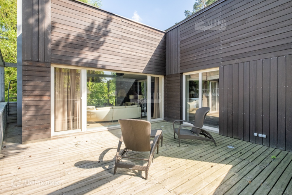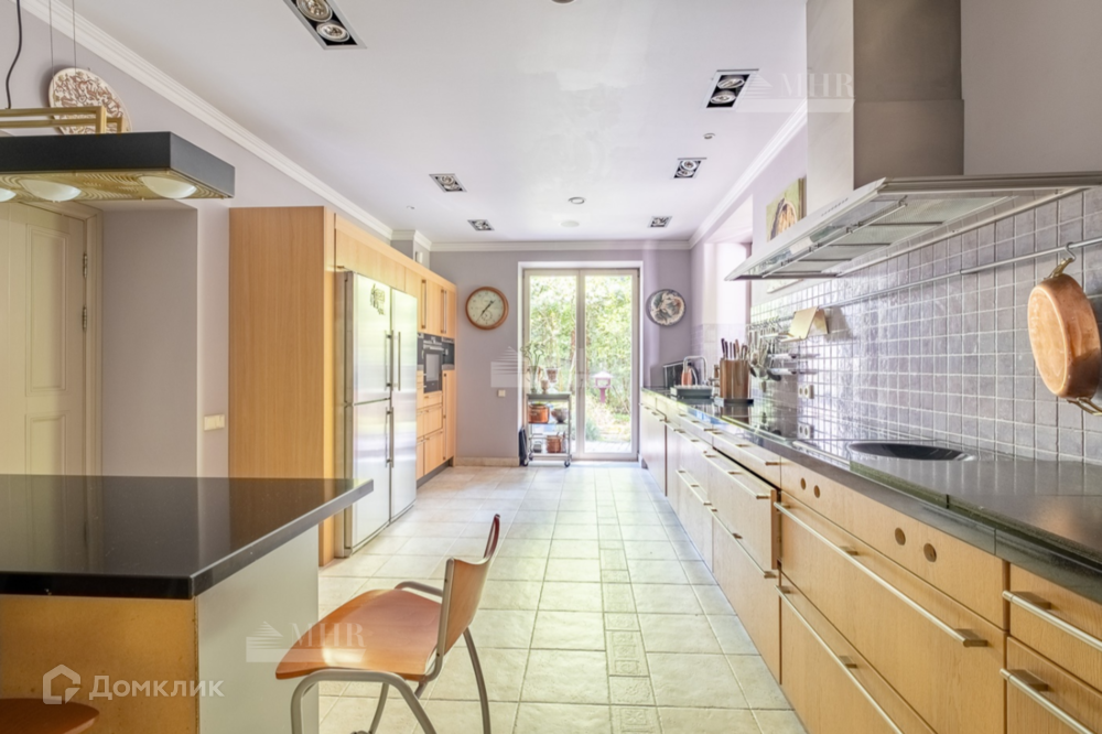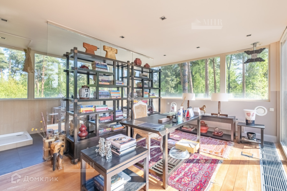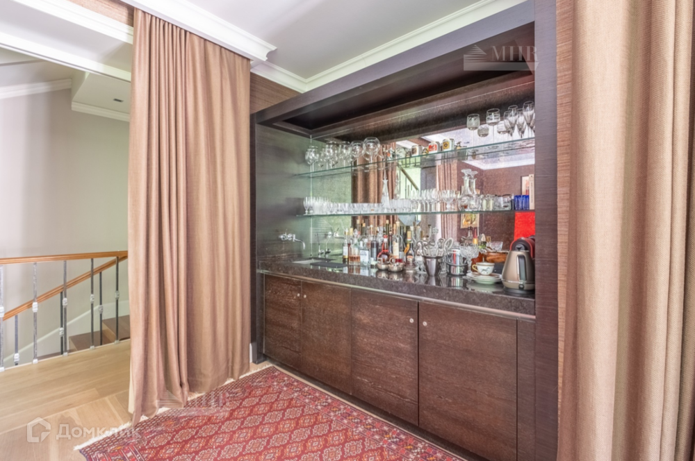 1 этаж: большая двусветная гостиная с камином, столовая и кухня с выходом на террасу, с/у, гостевая спальня, 2 гардеробные, холл, винный погреб (на 500 бутылок), двухэтажный блок для персонала с отдельным входом (кухня-гостиная, 3 спальни, с/у).