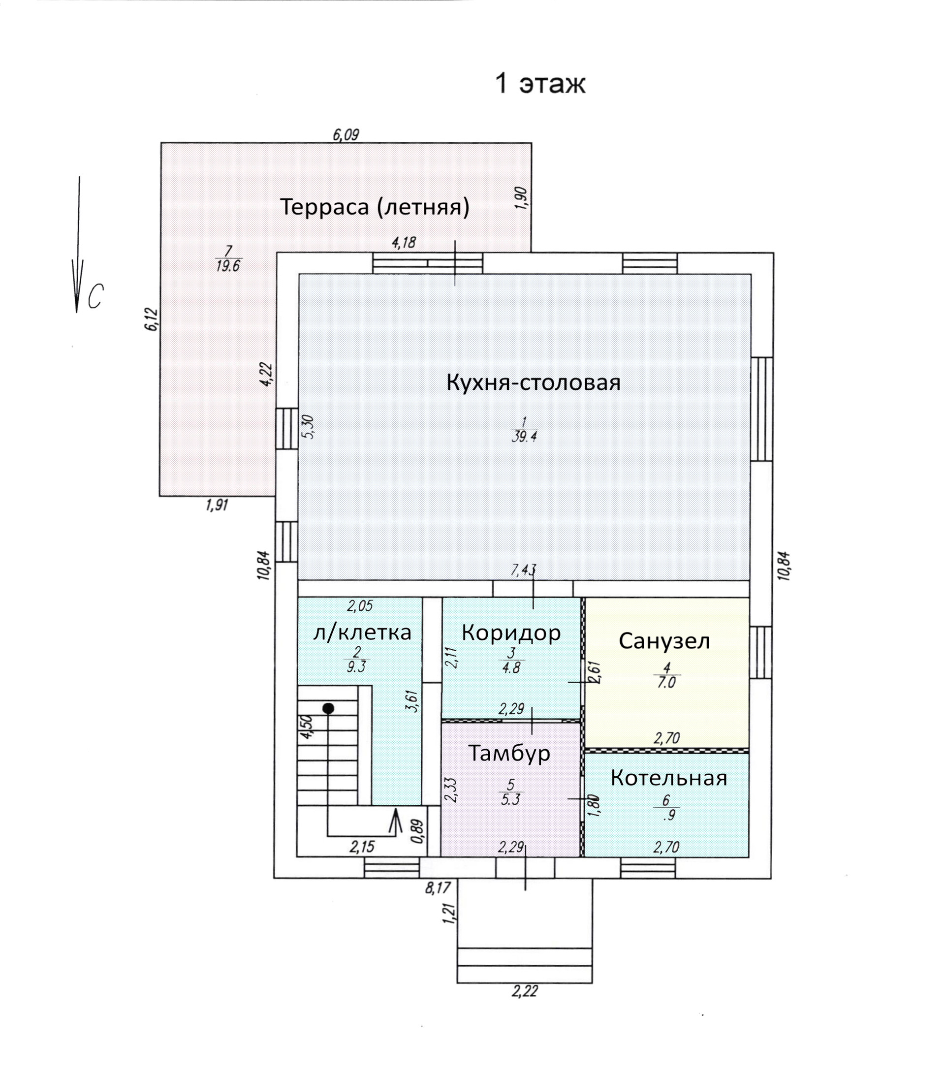 Межэтажная лестница - да (пеноблок + дерево)