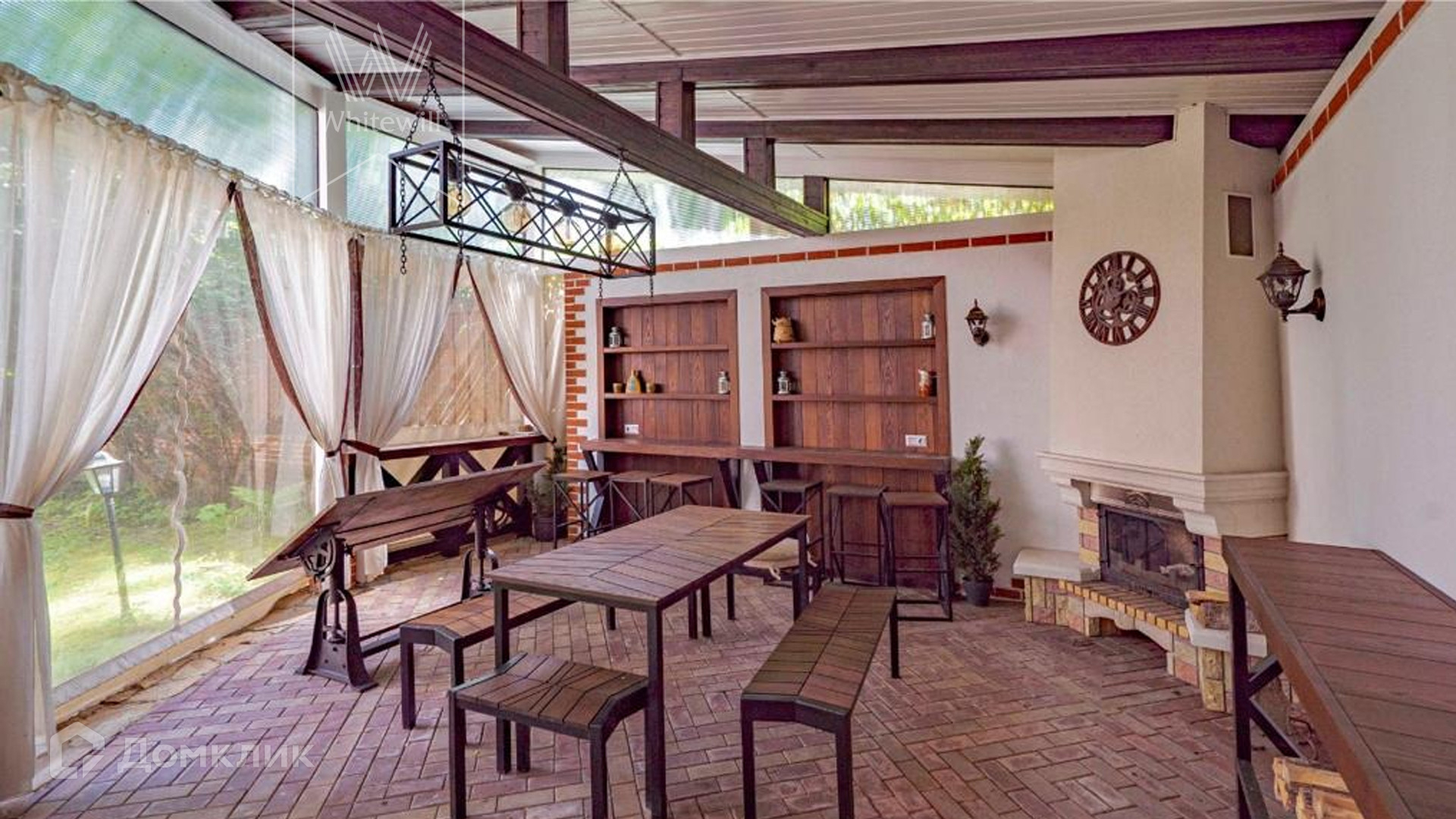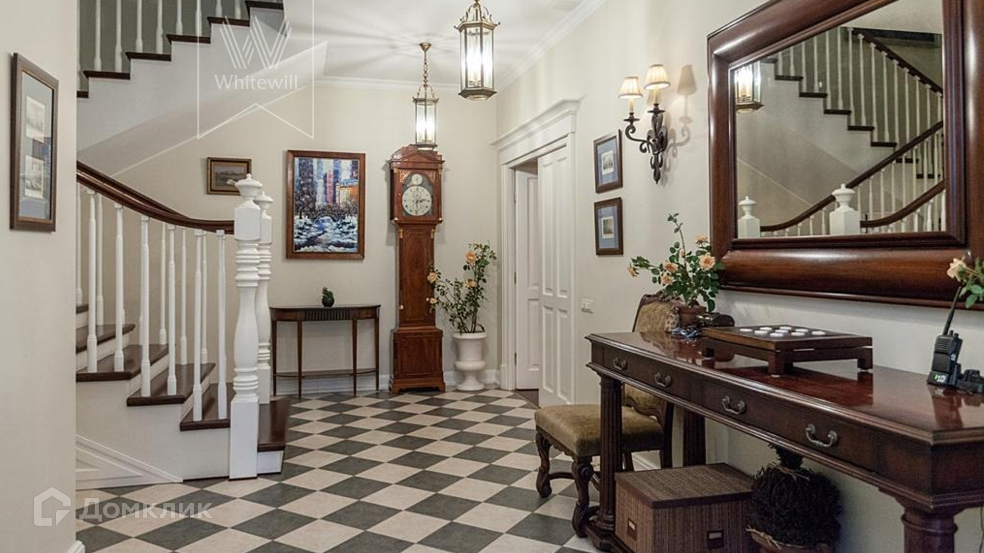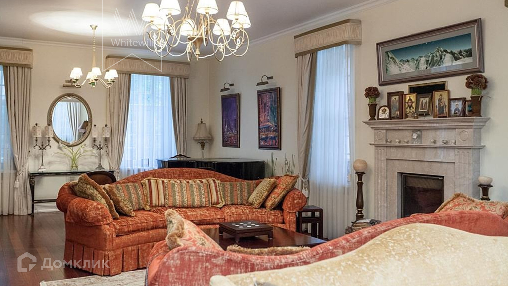 ID 9 740. Жуковка-3. Семейный загородный особняк площадью 500 м² в английском стиле расположен на ухоженном лесном участке 15 соток. Фасад дома облицован красным кирпичом и украшен белыми рустами и балюстрадой. На первом этаже — просторная гостиная с камином, столовая и оборудованная кухня. В доме спланировано 4 спальни, на мансардном этаже кабинет и библиотека с домашним кинотеатром. Интерьер выдержан в едином английском стиле с антикварной мебелью. На участке около главного дома построили летнюю беседку с камином, помещения для охраны и кладовая для инвентаря. 3 машины можно оставить на территории под навесом.