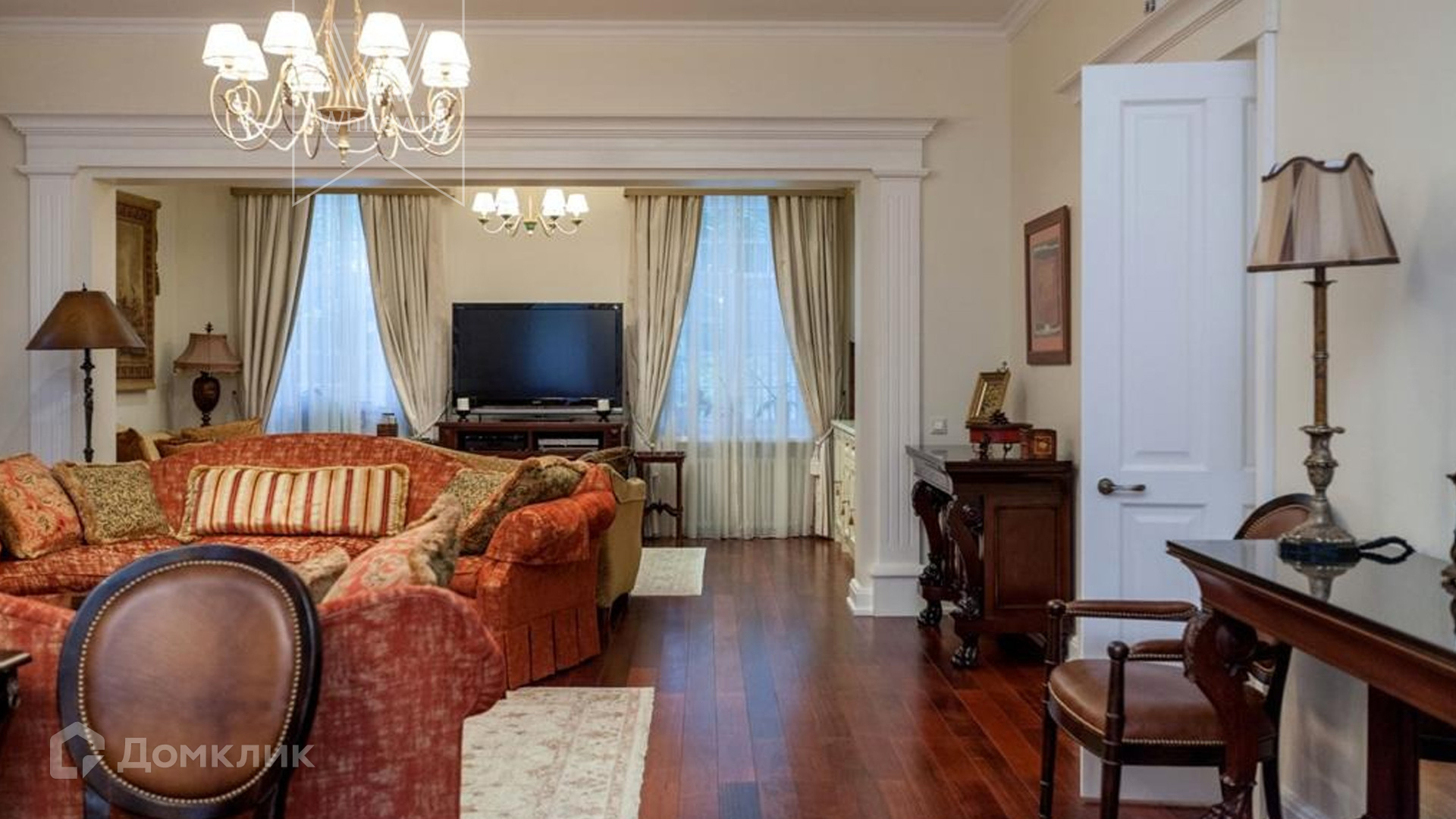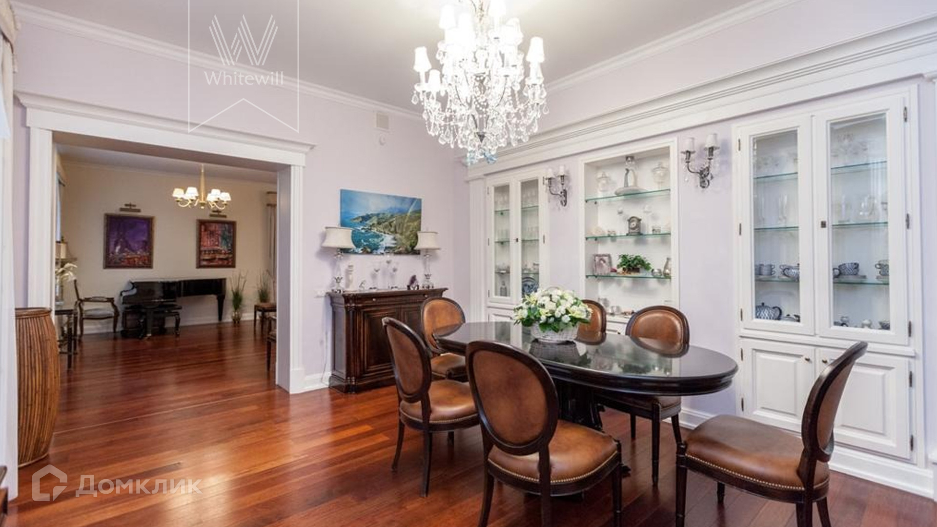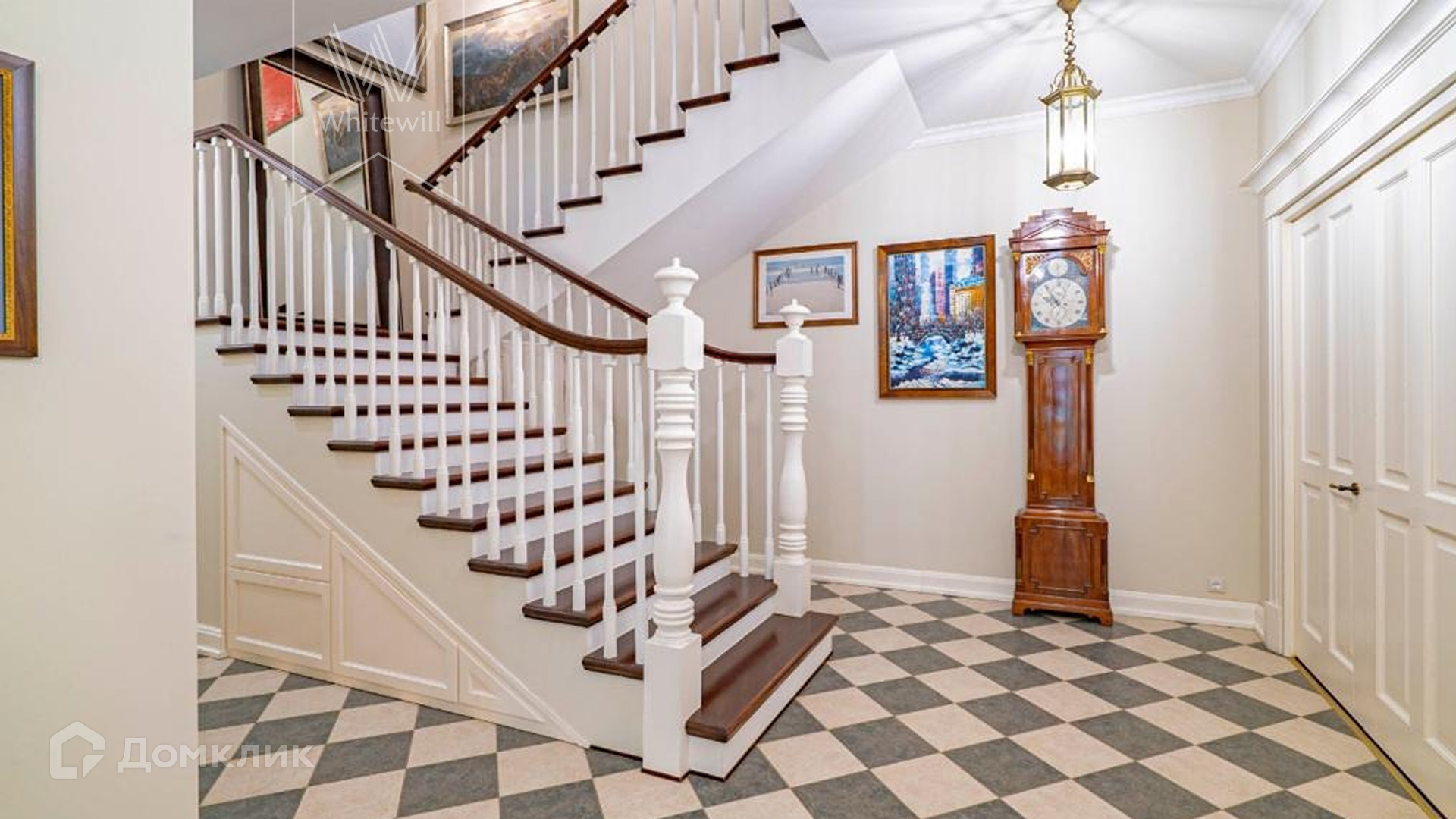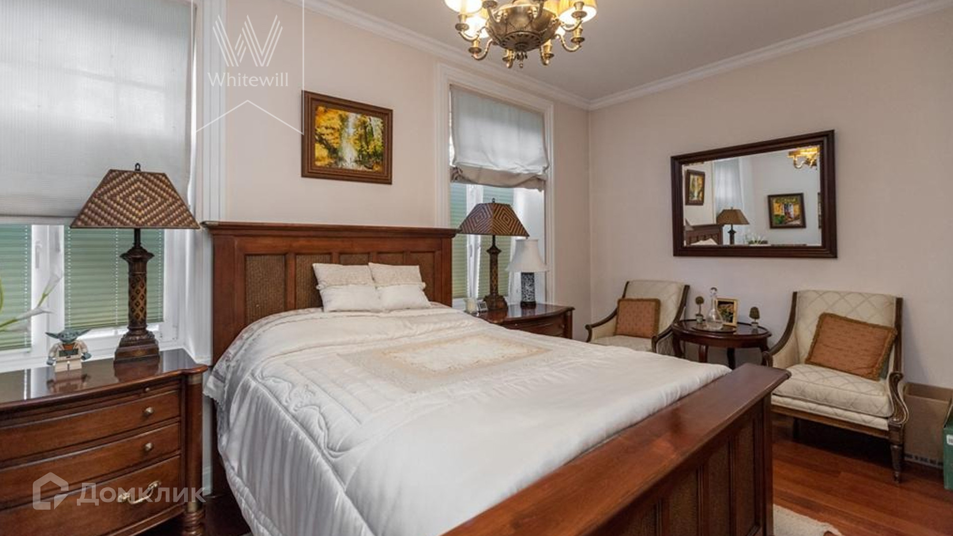 ID 9 740. Жуковка-3. Семейный загородный особняк площадью 500 м² в английском стиле расположен на ухоженном лесном участке 15 соток. Фасад дома облицован красным кирпичом и украшен белыми рустами и балюстрадой. На первом этаже — просторная гостиная с камином, столовая и оборудованная кухня. В доме спланировано 4 спальни, на мансардном этаже кабинет и библиотека с домашним кинотеатром. Интерьер выдержан в едином английском стиле с антикварной мебелью. На участке около главного дома построили летнюю беседку с камином, помещения для охраны и кладовая для инвентаря. 3 машины можно оставить на территории под навесом.