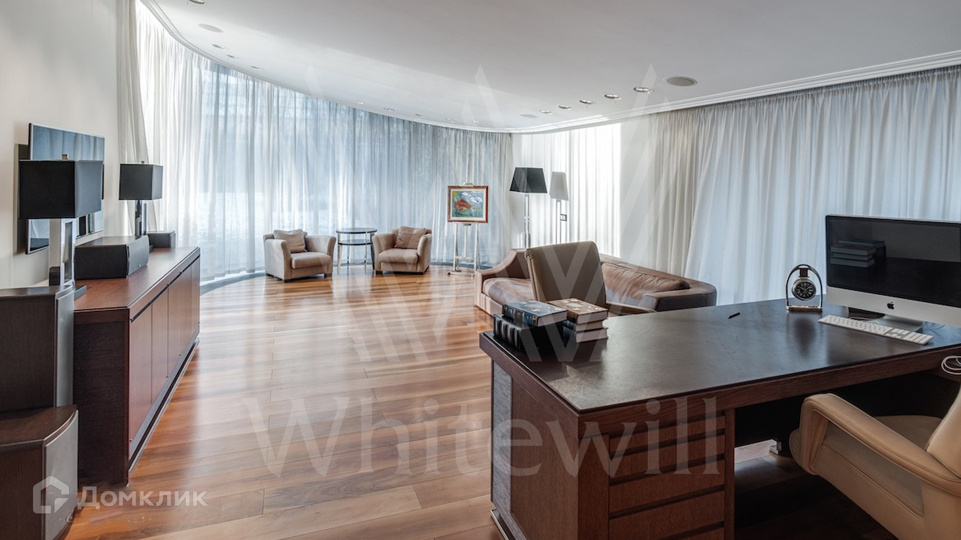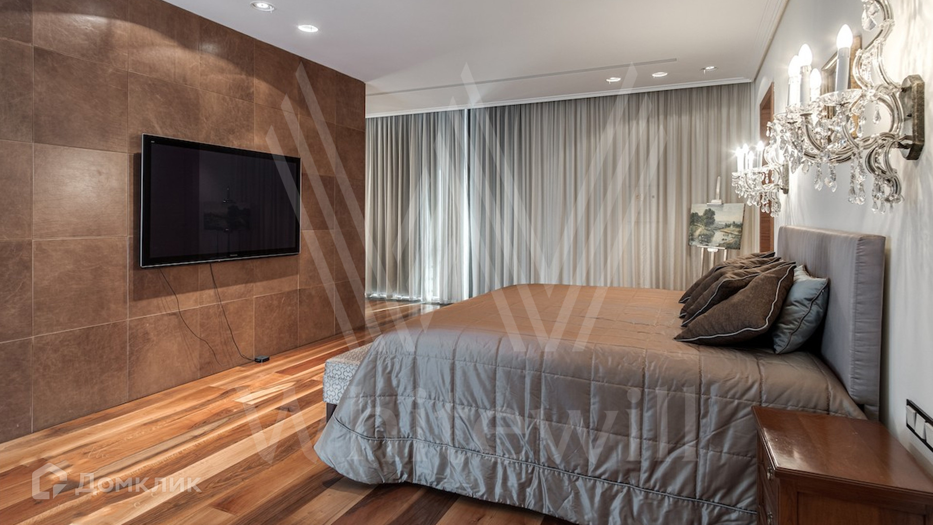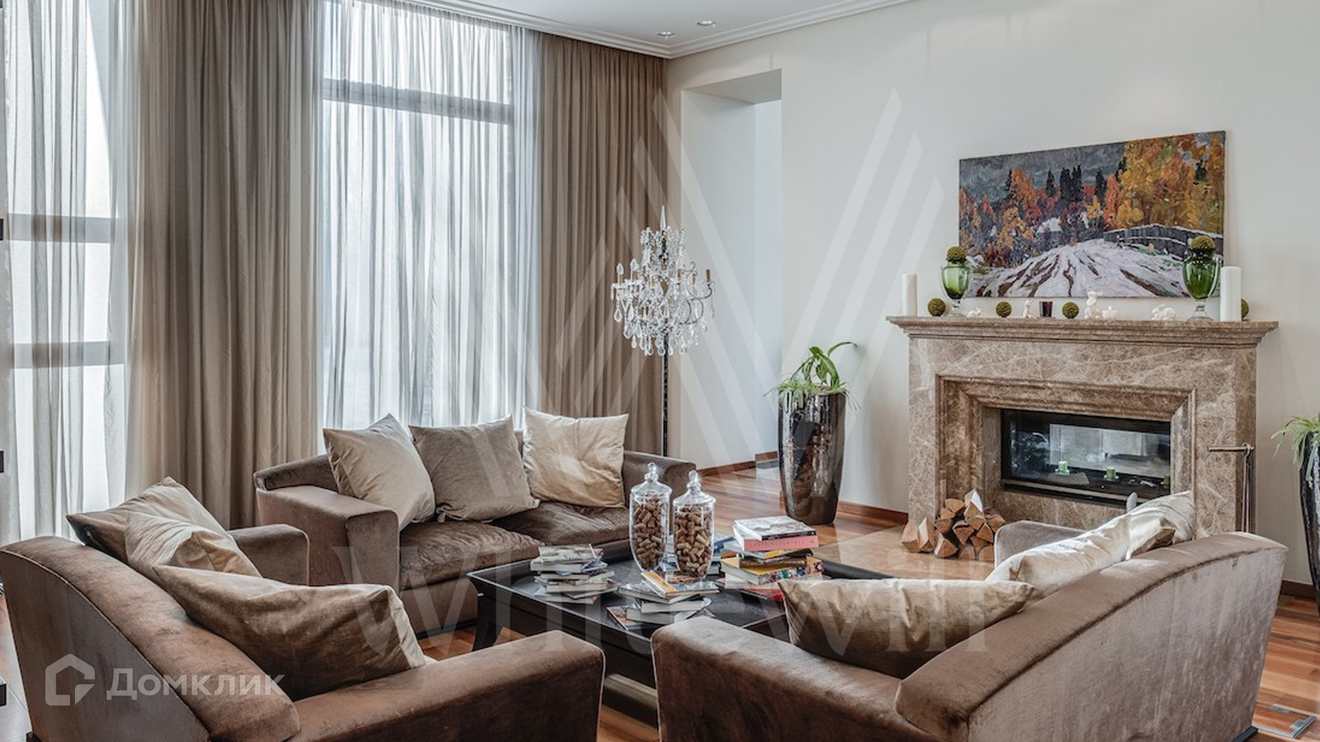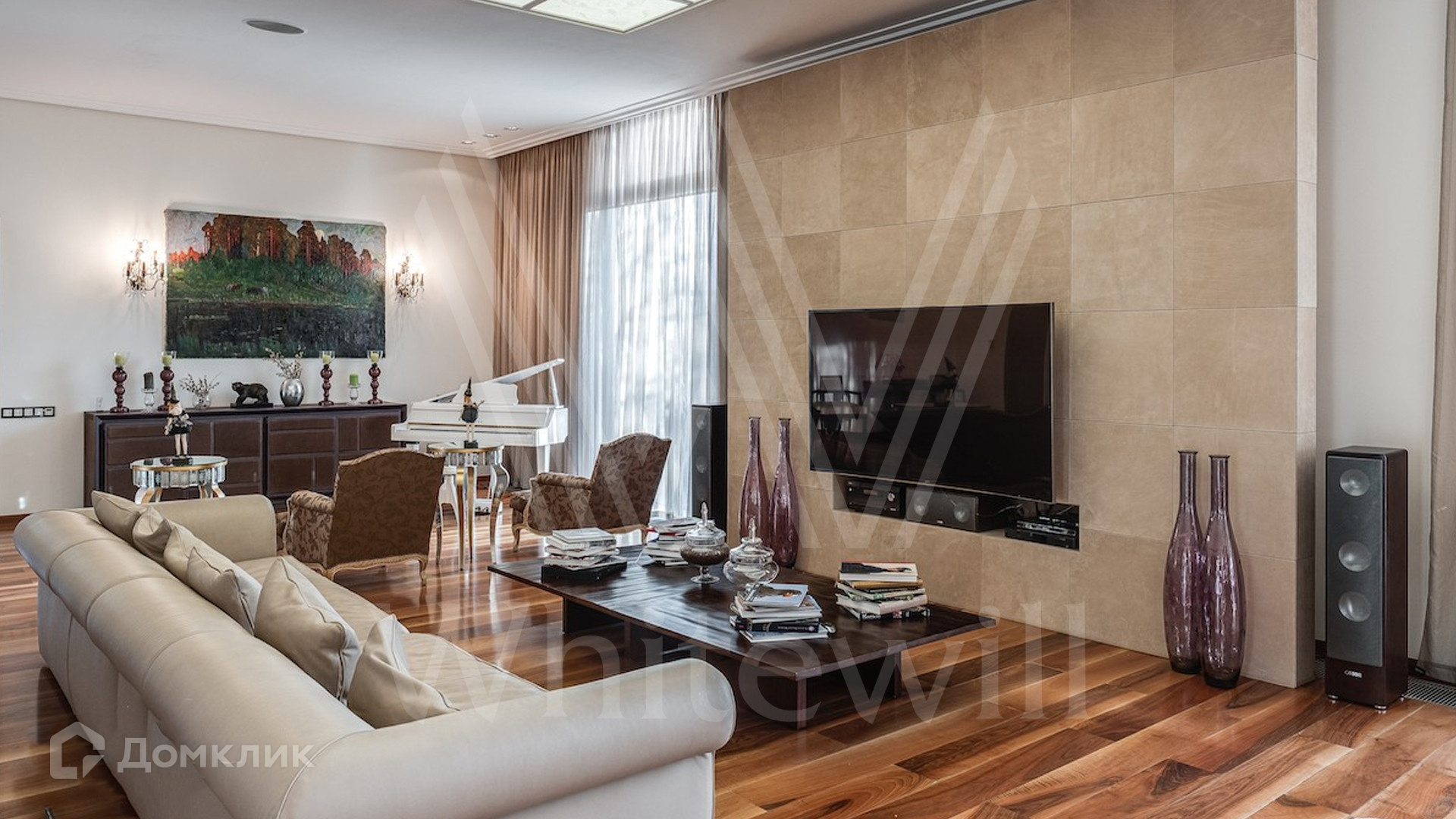 ID 9 405. Жуковка 21. Представительная загородная резиденция площадью 1 360 м² построена на полевом участке 50 соток. Необычный фасад дома облицован коричневым и бежевым клинкером, кровлю и землю соединяют тонкие стальные колонны. Интерьер резиденции выполнен в современном стиле — в отделке использовали натуральное дерево ценных пород, камень, дизайнерскую мебель, сантехнику и бытовую технику премиальных брендов. В доме спланированы просторные гостевые комнаты, гостиные, 5 спален с санузлами и гардеробными, тренажерный зал и сауна. Для персонала отведен отдельный блок с кухней. Из гостиной первого этажа можно выйти в зону патио и на участок. Для 3 машин предусмотрен гараж, две гостевые машины можно оставить под навесом.