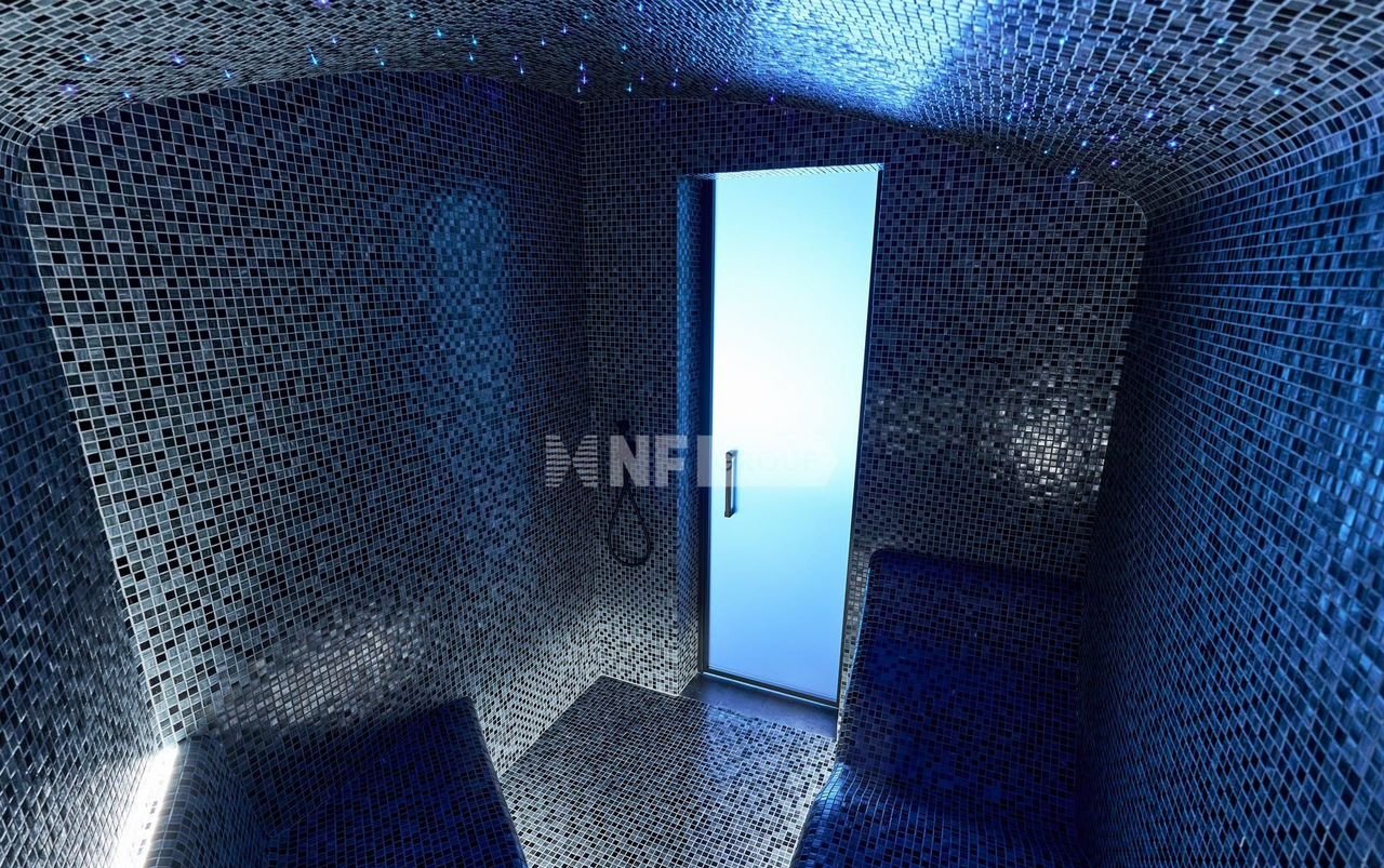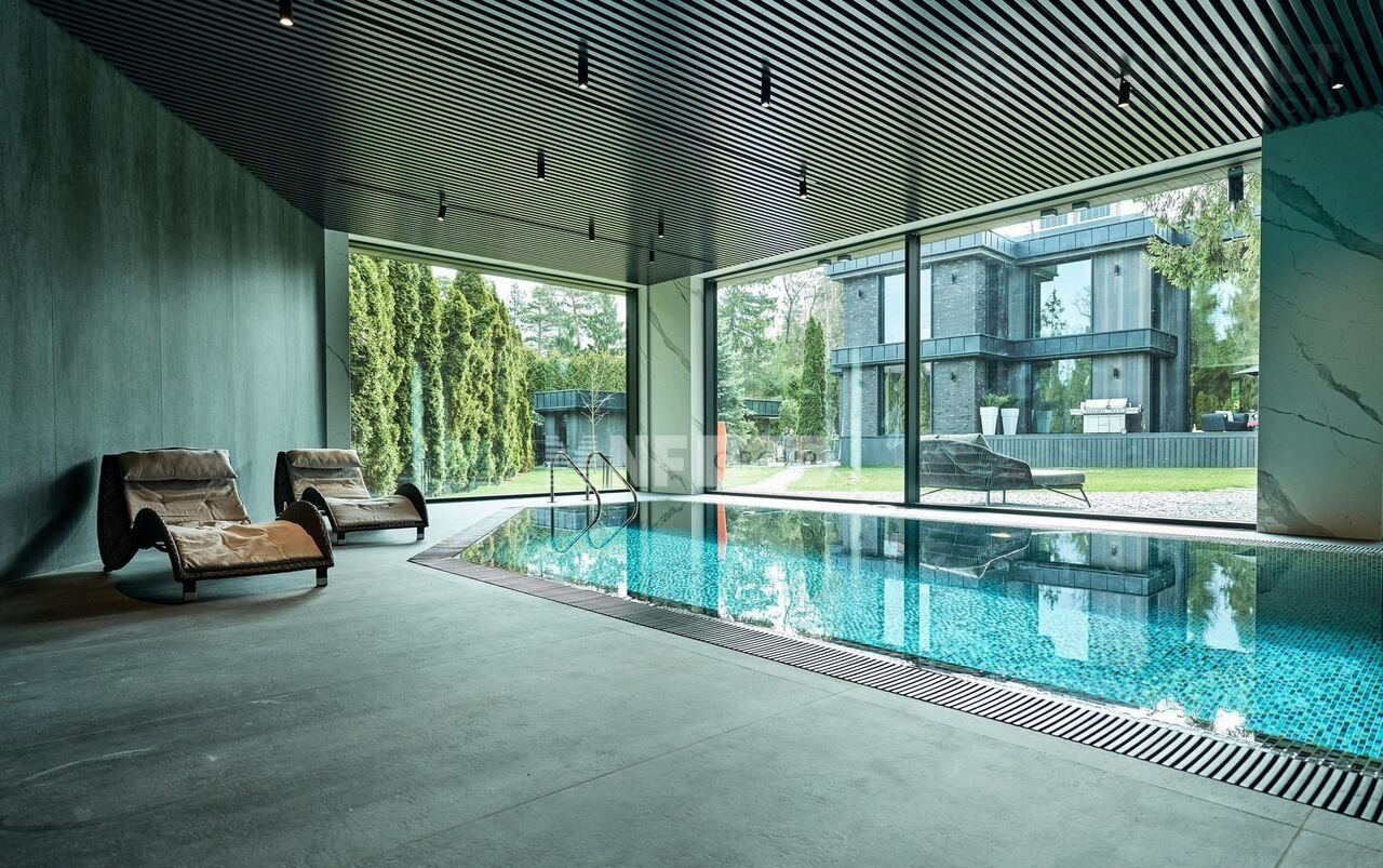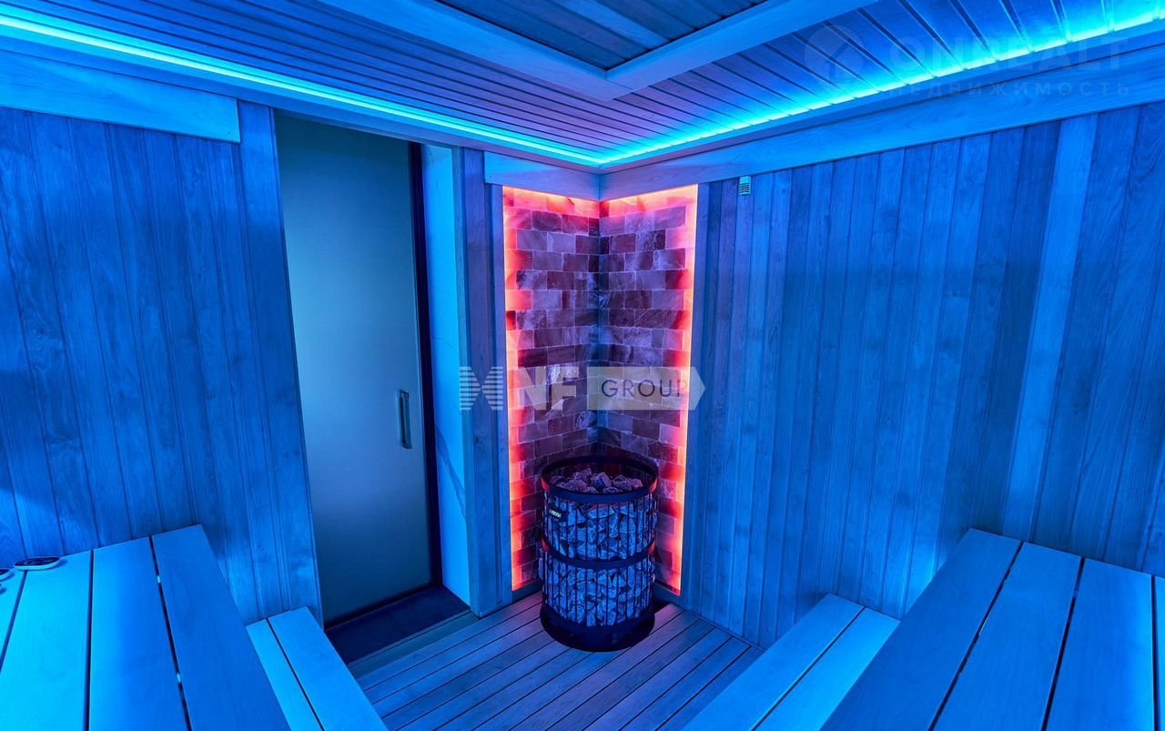 На участке гараж на 4 автомобиля (125 кв.м) и превосходный SРА-комплекс площадью 350 кв.м. с бассейном, сауной и обширной зоной для приема гостей.