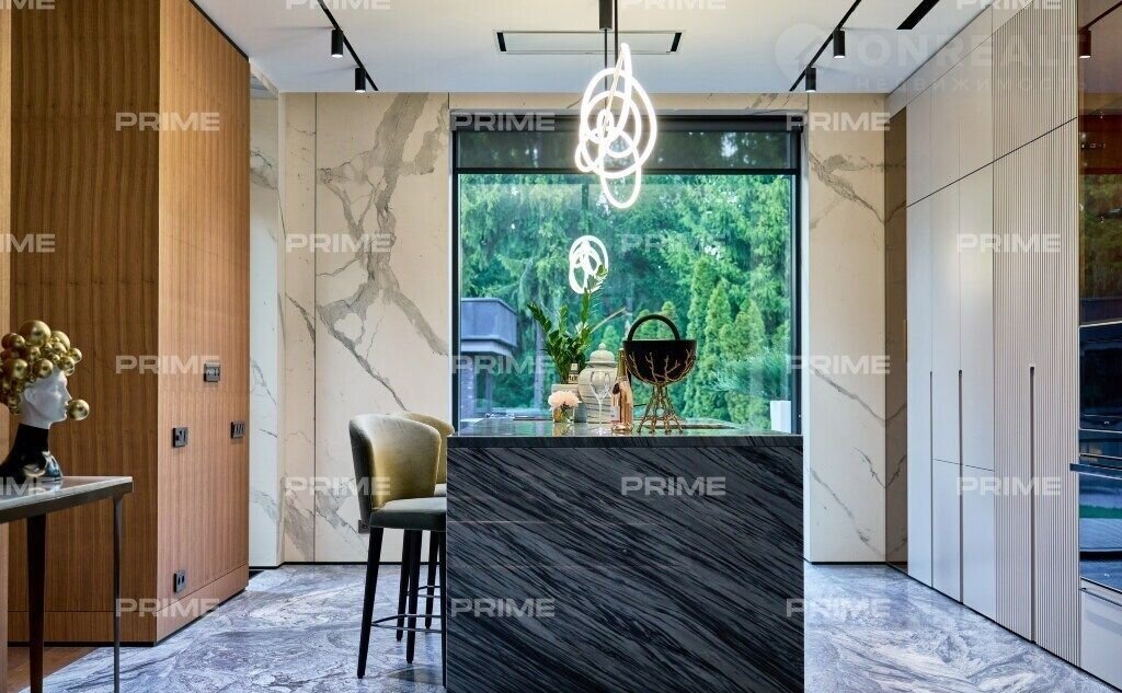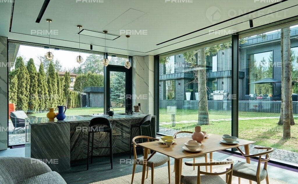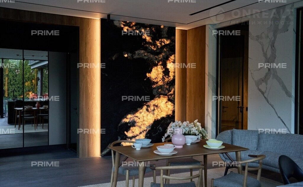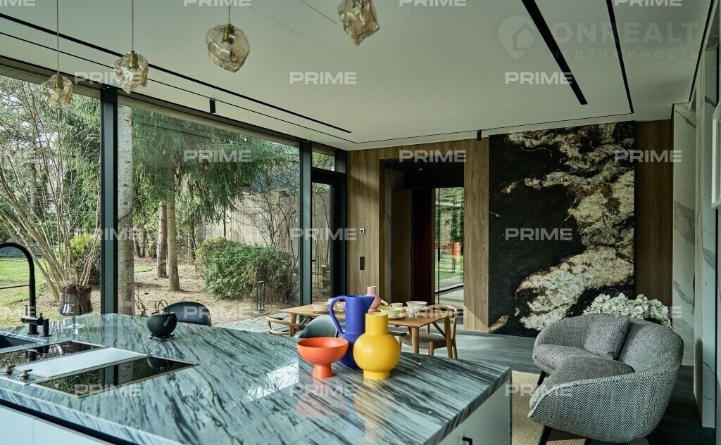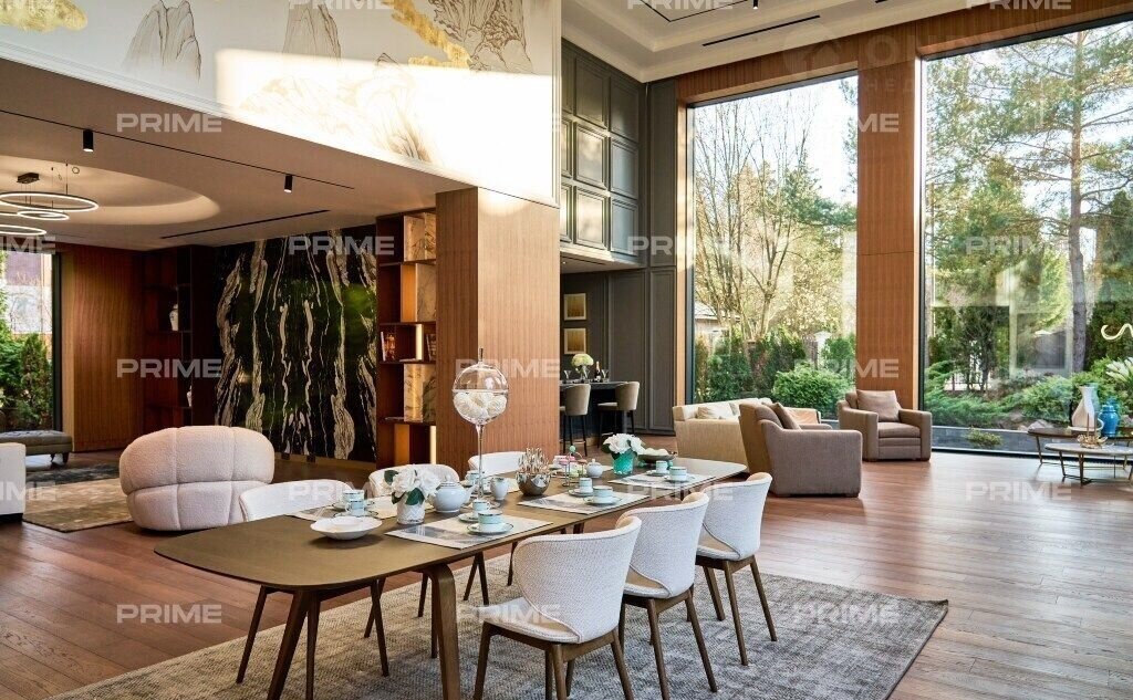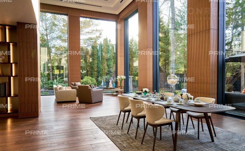 Внутpеннee пpостранство дома продумано до мелочей. Просторная кухня и парадная столовая подойдут как для уютных семейных ужинов, так и для изысканных приемов. Гостиная с панорамными окнами наполняется естественным светом, а каминный зал с благородной отделкой станет идеальным местом для неспешных вечеров у огня. Кабинет выполнен в строгом стиле и позволит сосредоточиться на работе в уединенной обстановке.