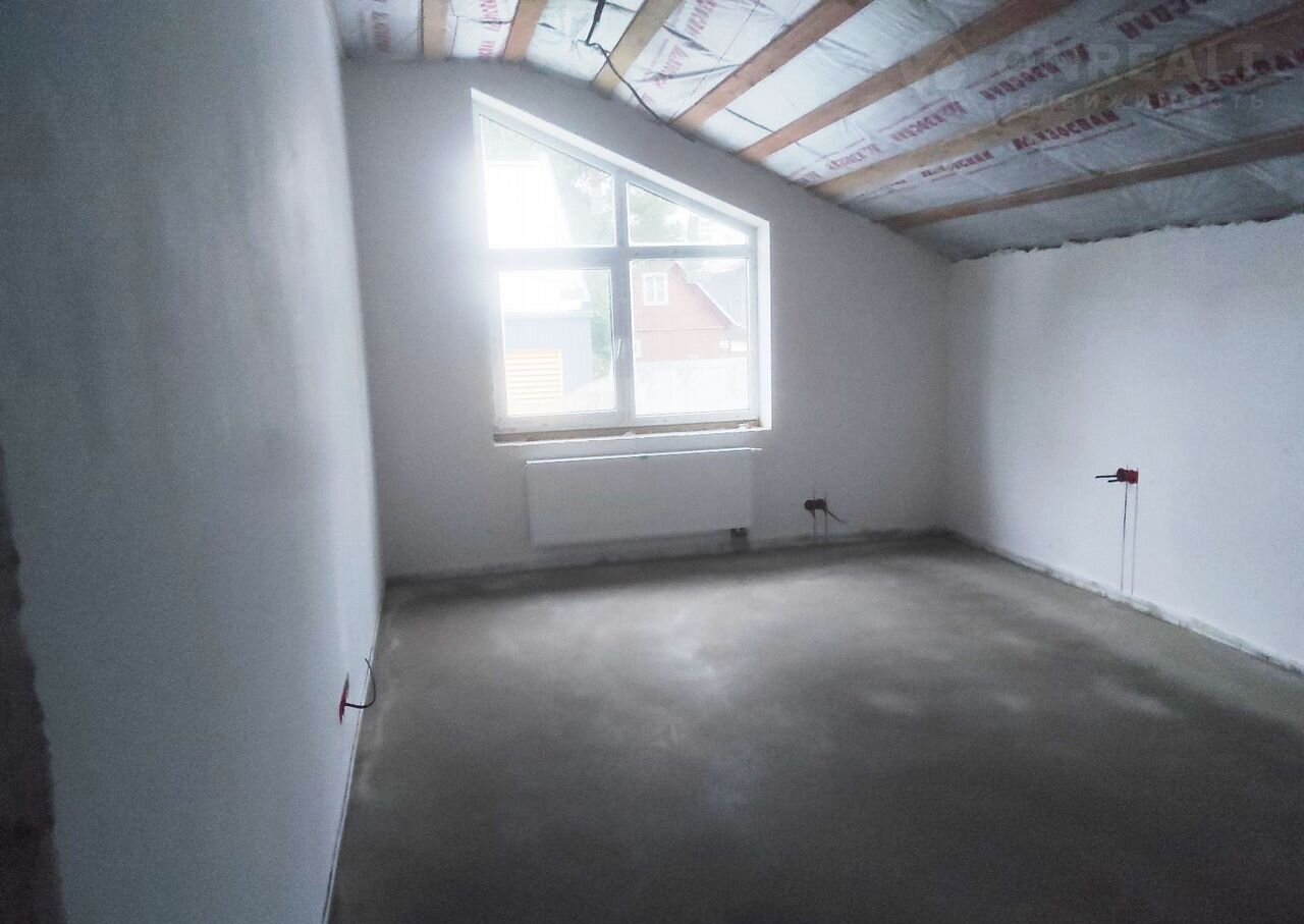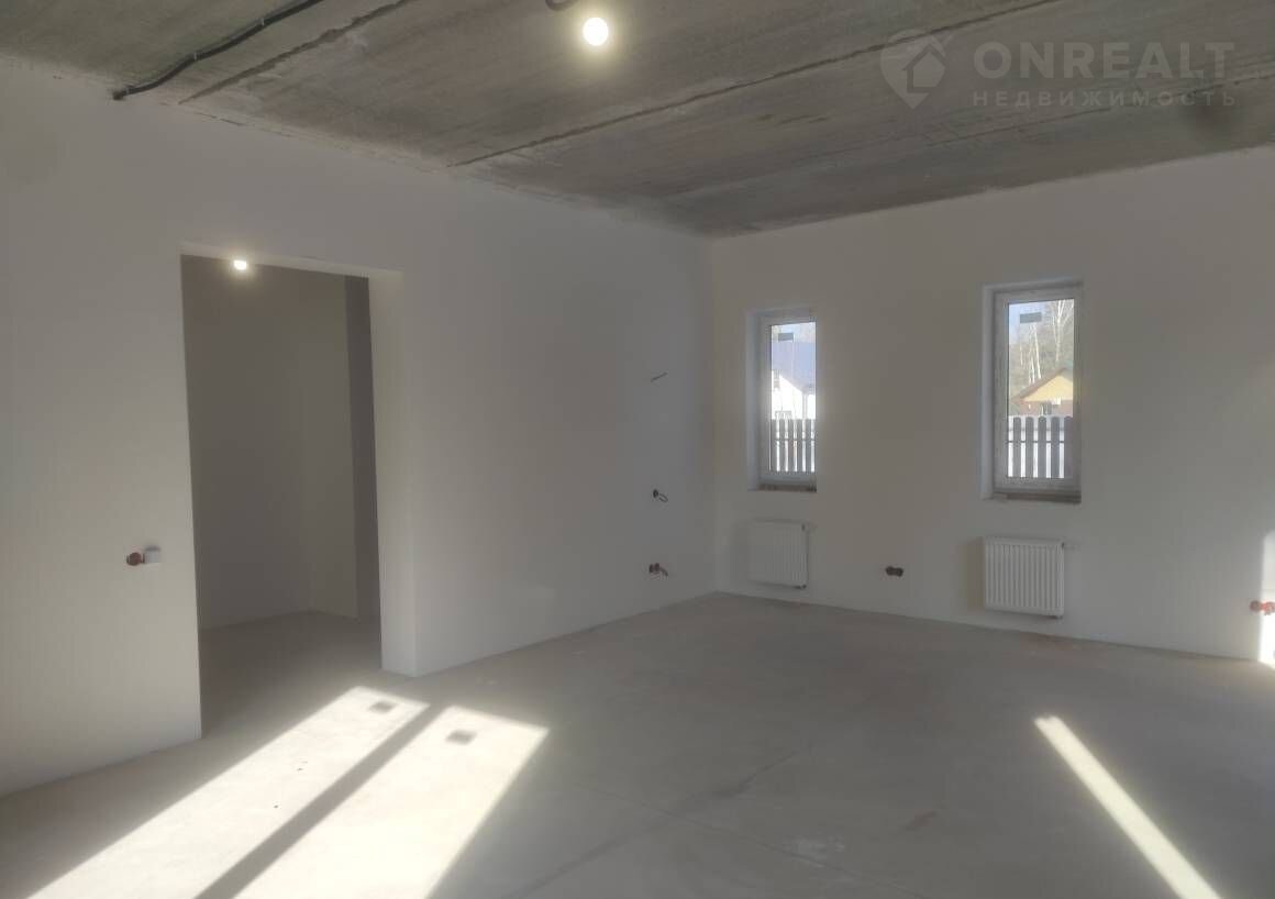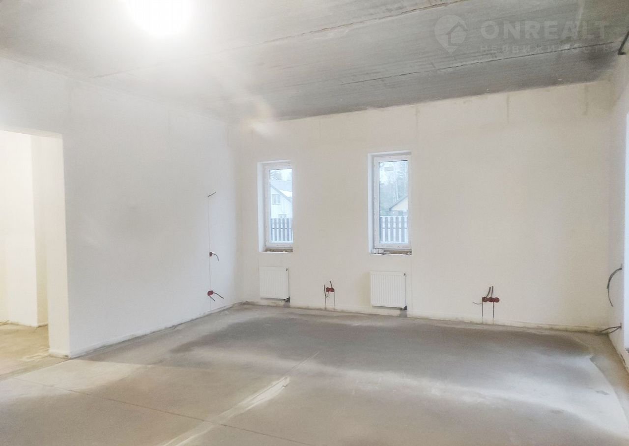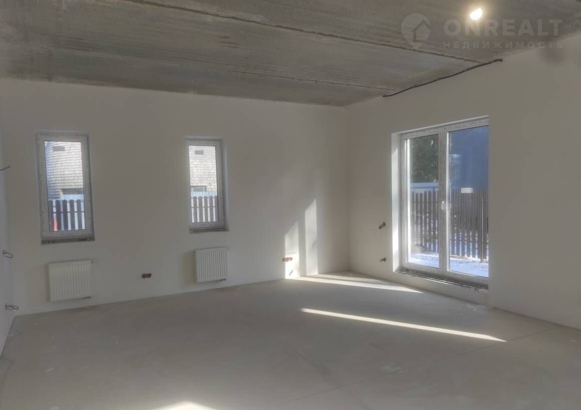 Штукатурка и шпатлевка стен, выровнены полы, разводка электрики, разводка сантехники (без установки сантехнических приборов), разводка системы отопления с установкой радиаторов, теплые полы на первом этаже.