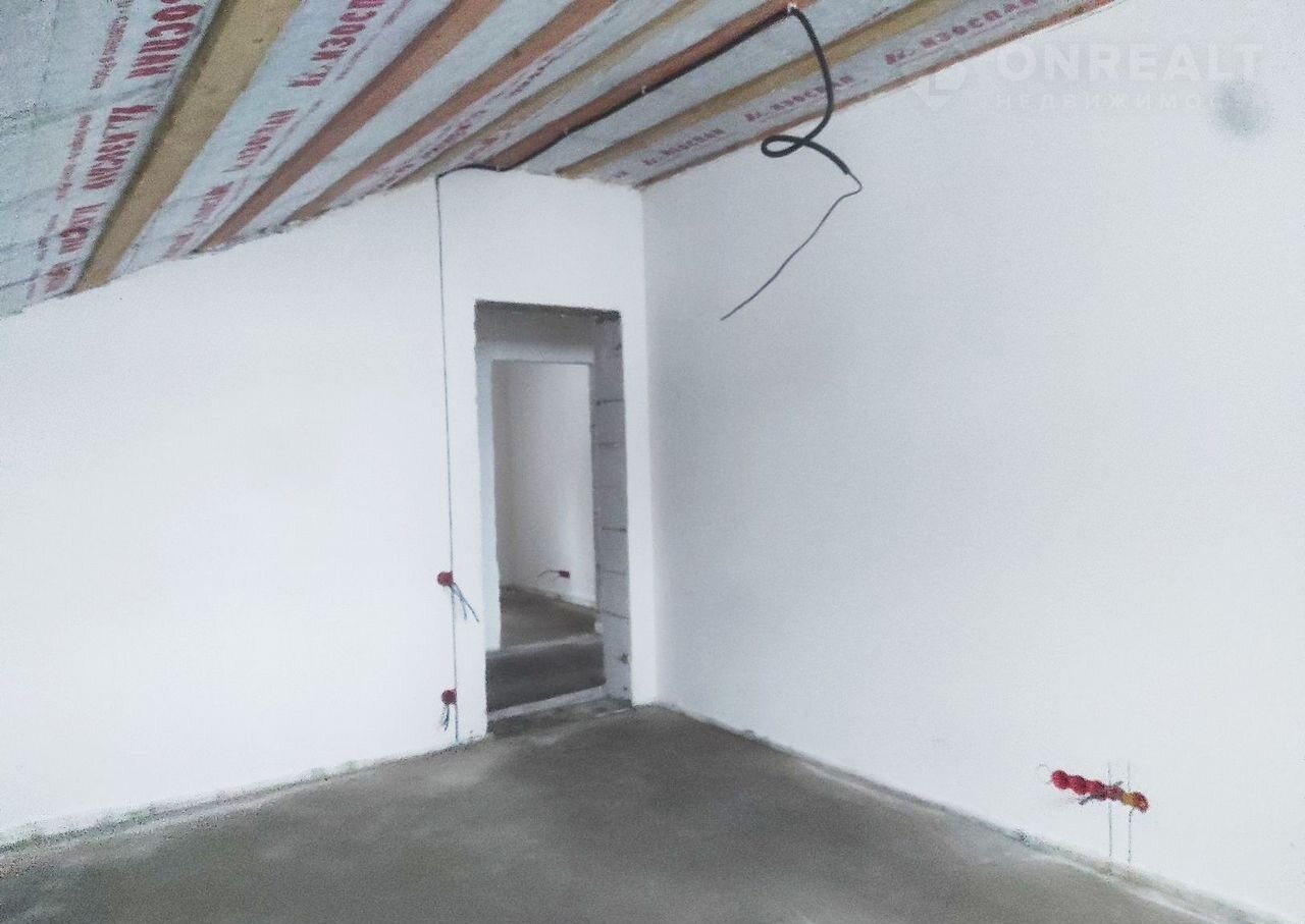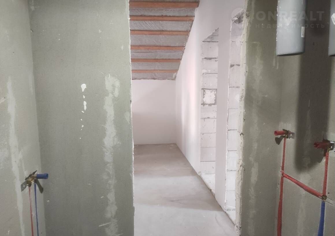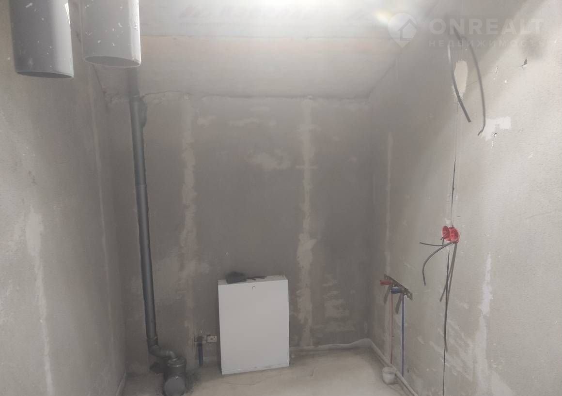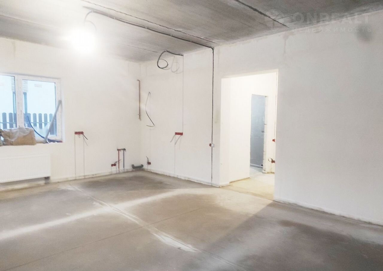 Штукатурка и шпатлевка стен, выровнены полы, разводка электрики, разводка сантехники (без установки сантехнических приборов), разводка системы отопления с установкой радиаторов, теплые полы на первом этаже.