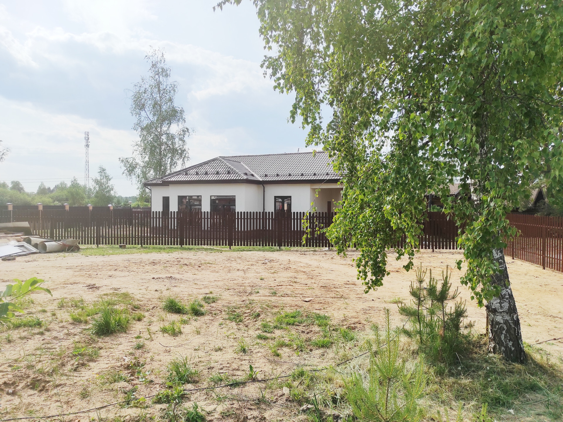 С двух сторон участок огорожен евроштакетником.