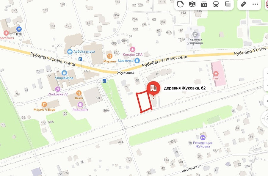 Продается участок 20 соток ровной прямоугольной формы. Жуковка , вблизи от ресторана Марио удобный подъезд с Рублевлево-Успенского шоссе.  Хорошо подойдет как для бизнеса так и для личного проживания.  Есть проект арендного бизнеса с доходностью 12% годовых. вокруг развитая инфраструктура - рестораны магазины, но в тоже время въезд на участок со спокойной дороги, потому можно сделать там например  частную клинику или другой проект требующий конфиденциальности.  участок находится в собственности юридического лица, может быть продан вместе с юр лицом как готовый бизнес. звоните в любое время оперативный показ.