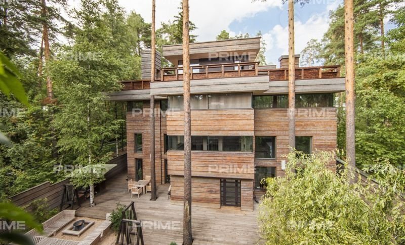 В доме три этажа и 3 просторные спальни с своими с/у. Гостиная с камином, кинозал, бильярдная и SРА-зона обеспечивают множество возможностей для общения и развлечений. Особенностью архитектуры является великолепная планировка, благодаря которой домовладение имеет множество зон отдыха в окружении леса. В доме предусмотрена эксплуатируемая кровля 300 кв. м с кухней, санузел.