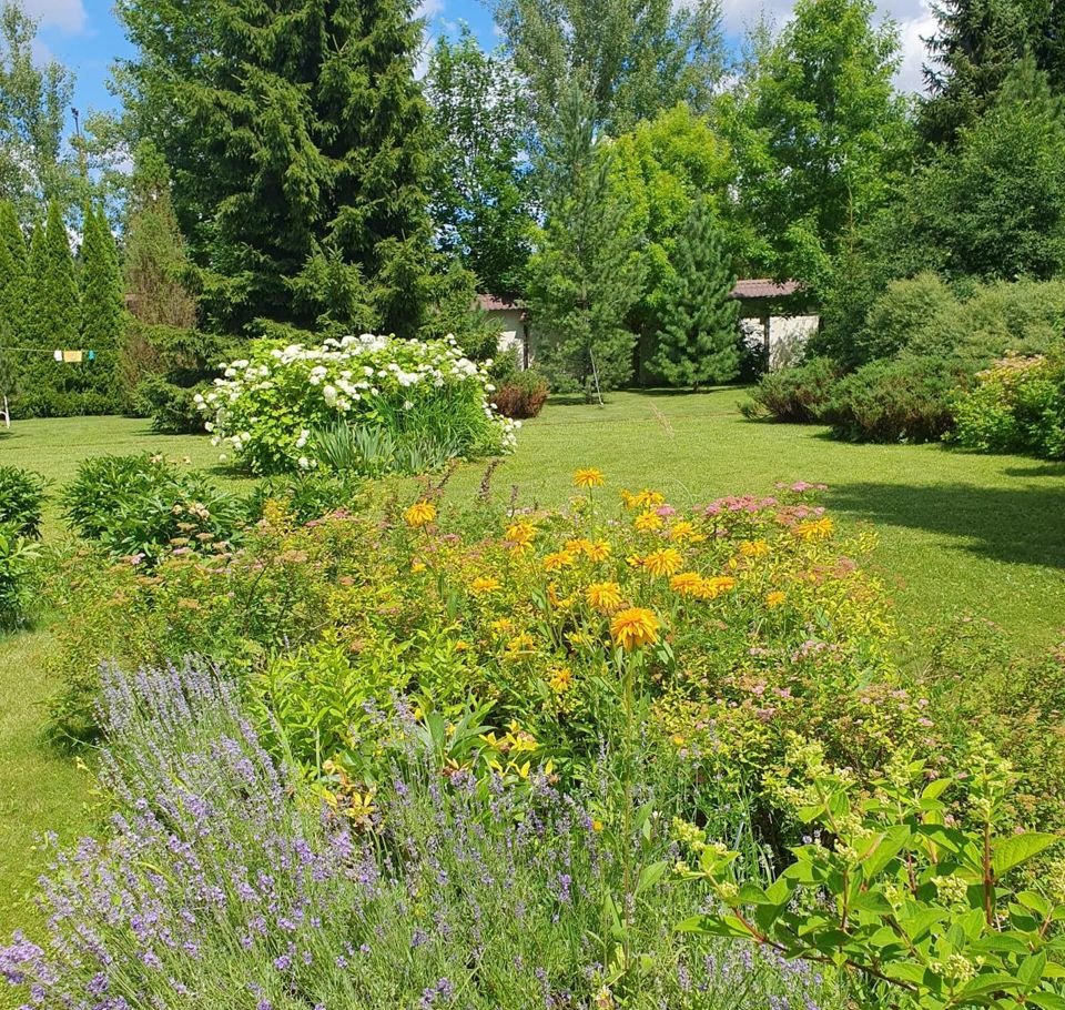 Весь утопает в зелени: сосны, кедры, ели (зеленые и голубые), дубы, каштаны, туи, есть ромашковая поляна, пионовый островок и многое др.