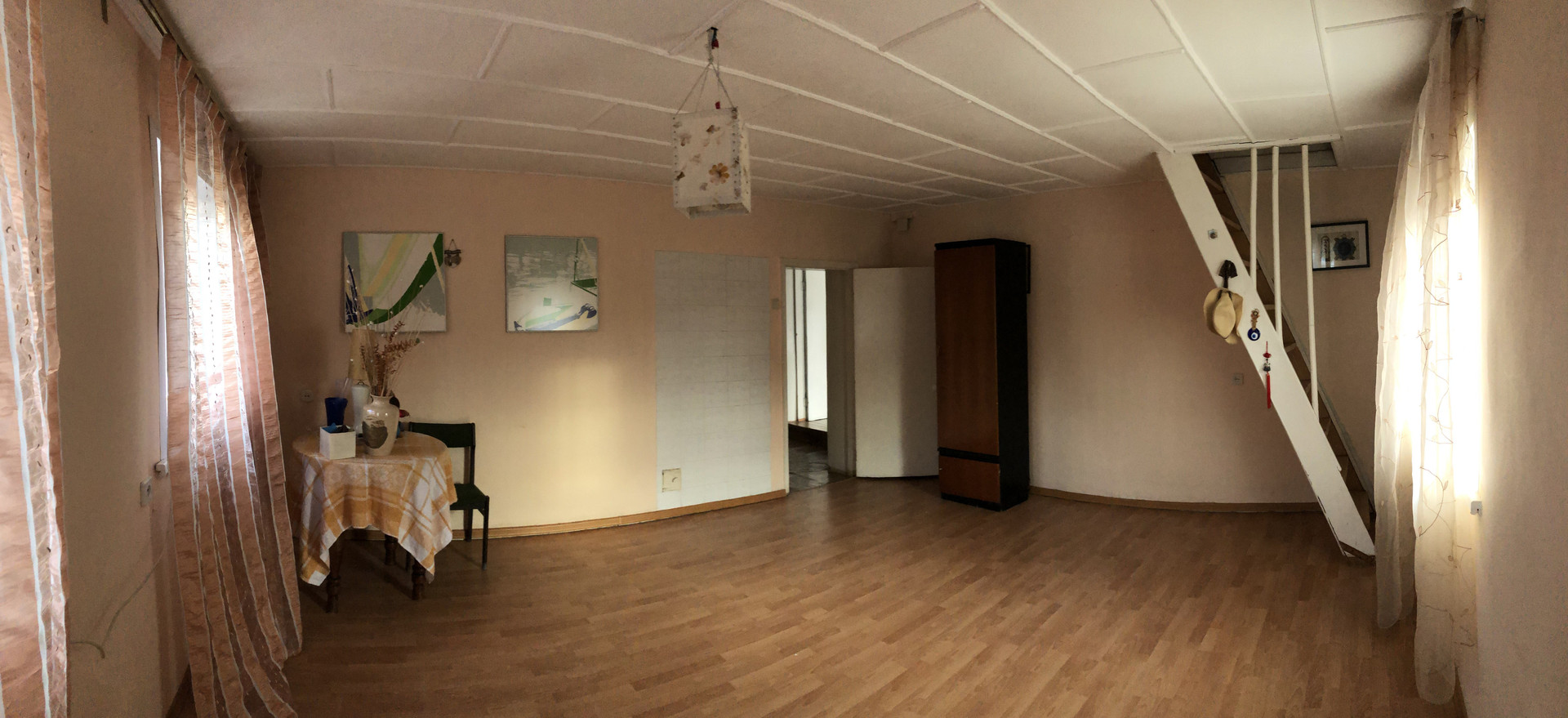 Дом состоит из: 2 изолированные комнаты на первом этаже, 1 комната на мансардном.