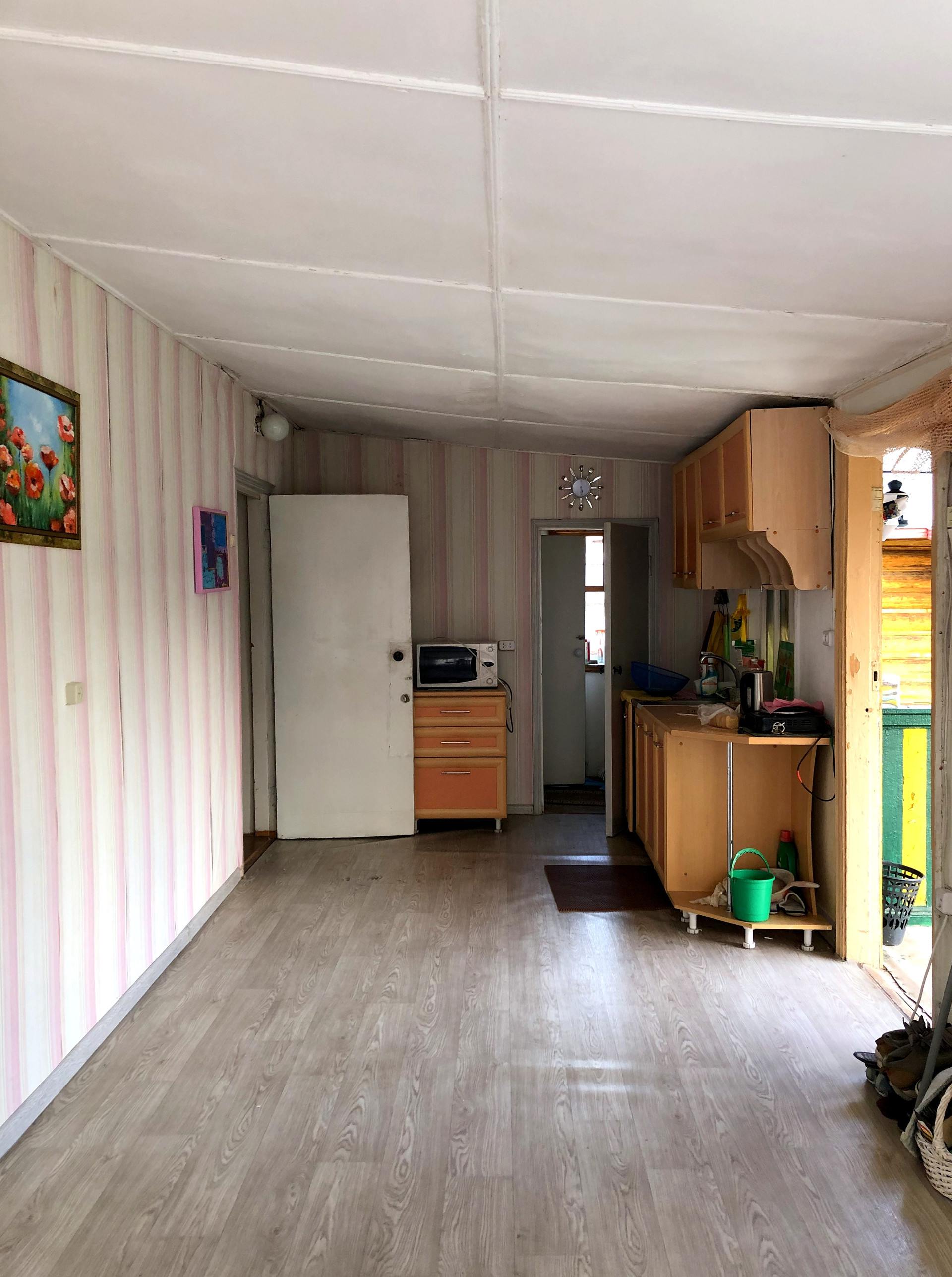 Состояние хорошее: установлены ст/пакеты, на полу линолеум и ламинат, обои.