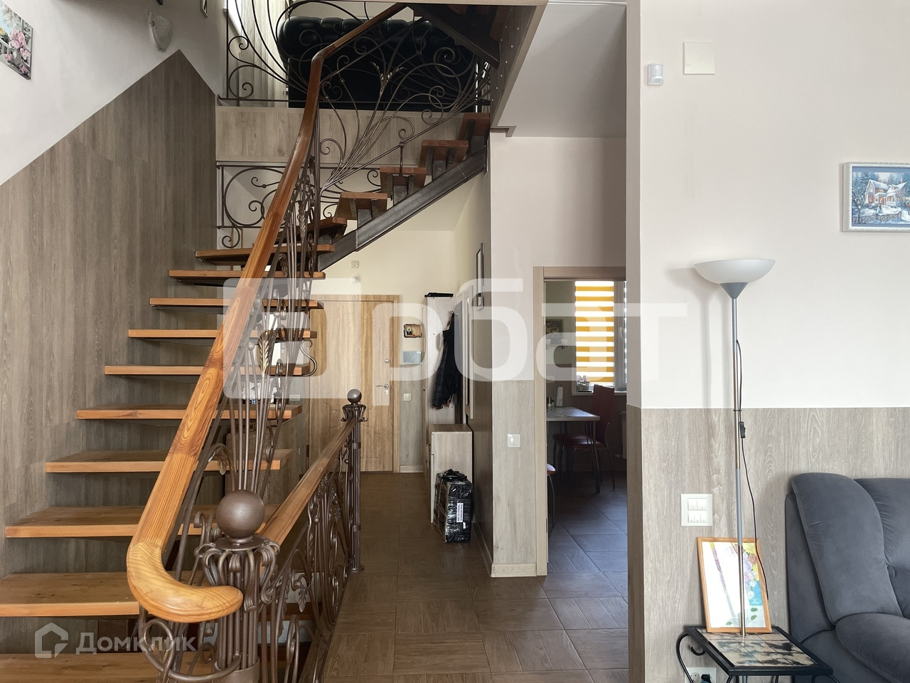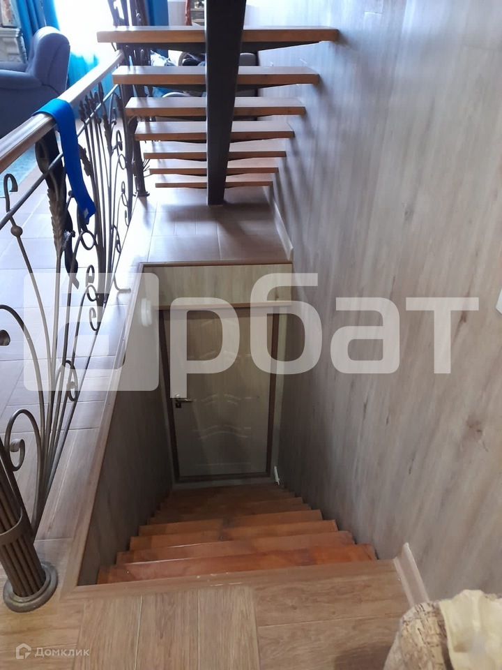 С 1 этажа по 3 этаж сделана кованная металлическая лестница, ступени лестницы из лиственницы.