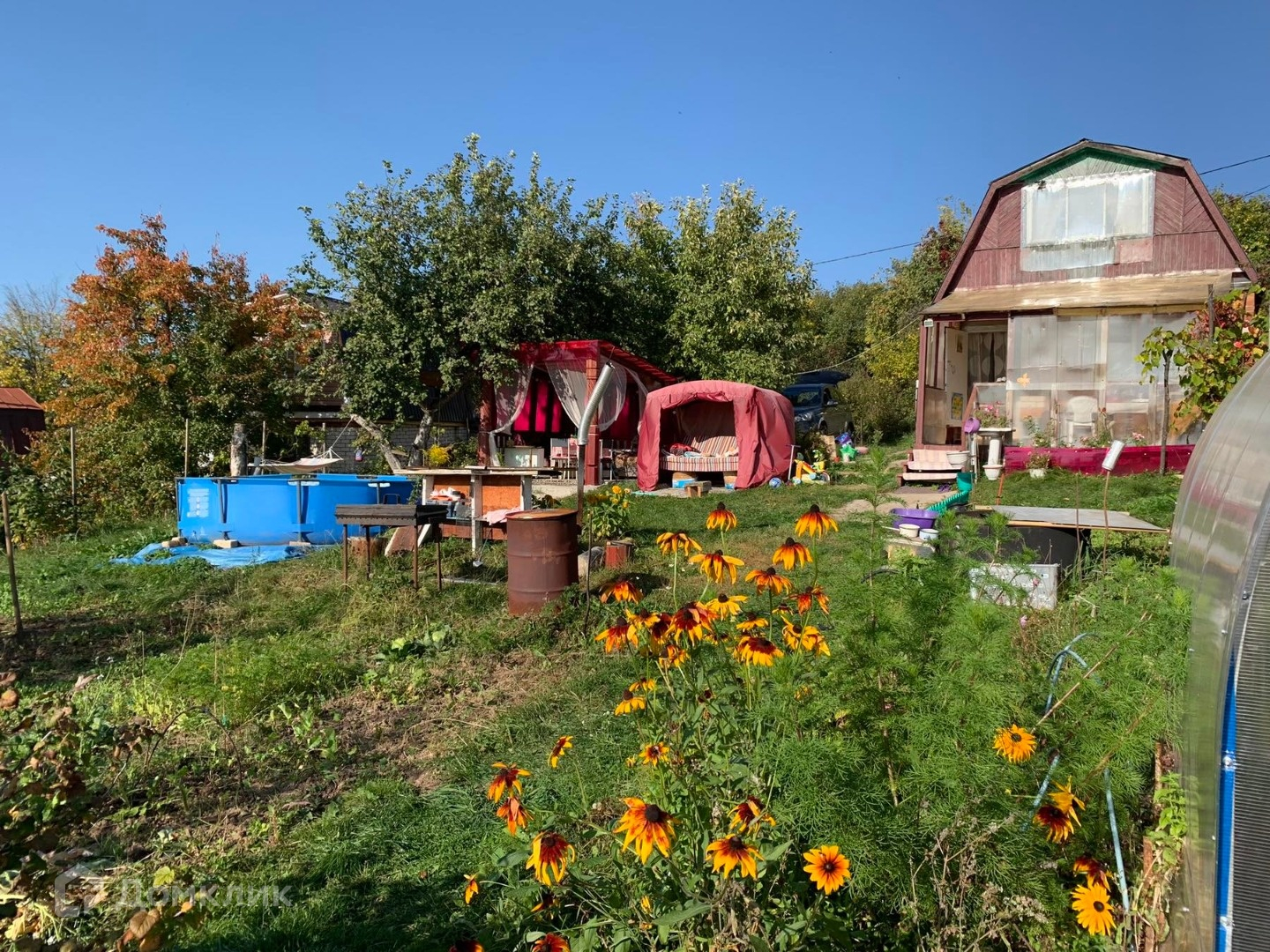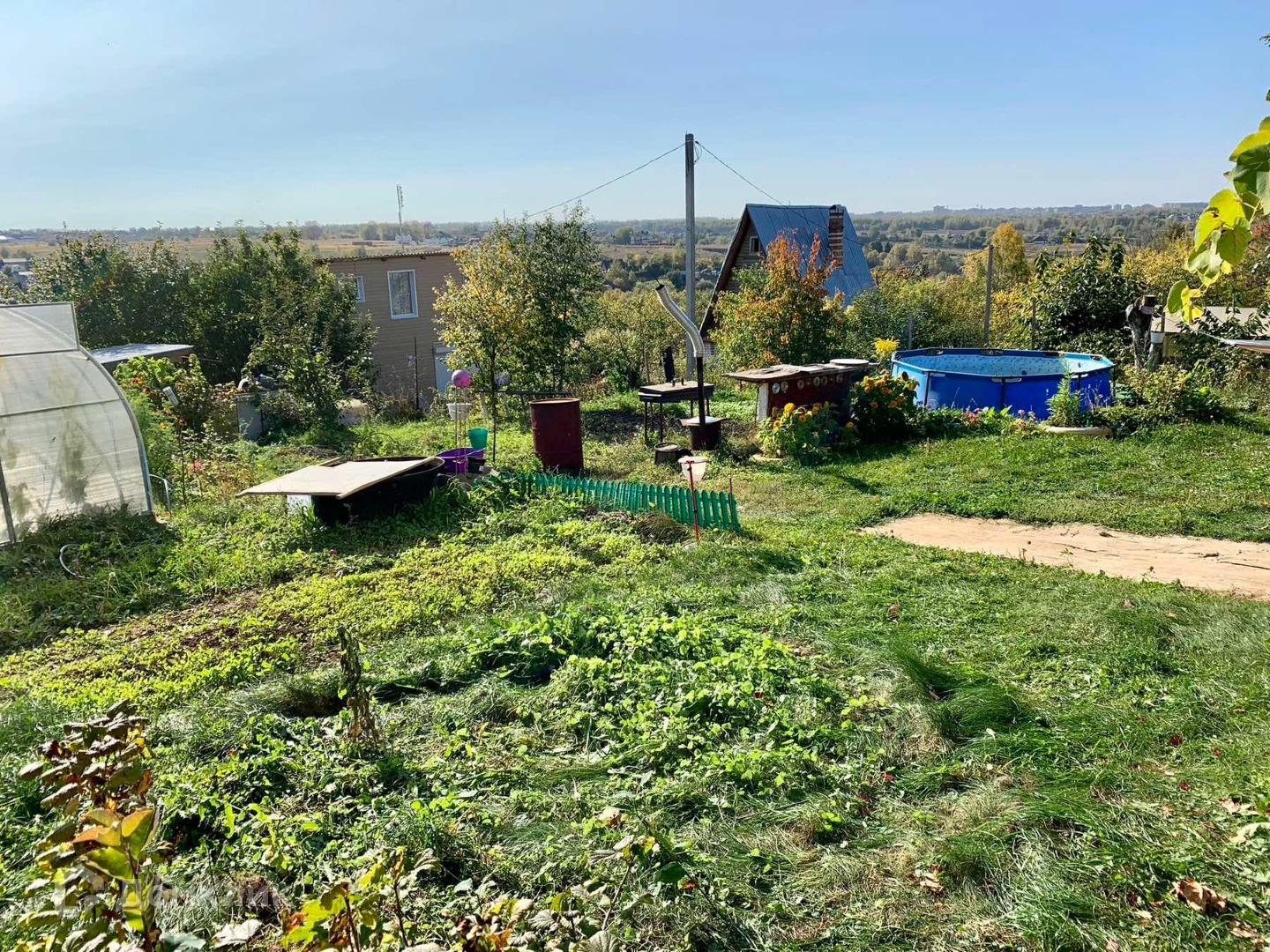 Имеется красивая установленная на бетонной площадке беседка-6m2. Есть парковочное место. Новая теплица и туалет.