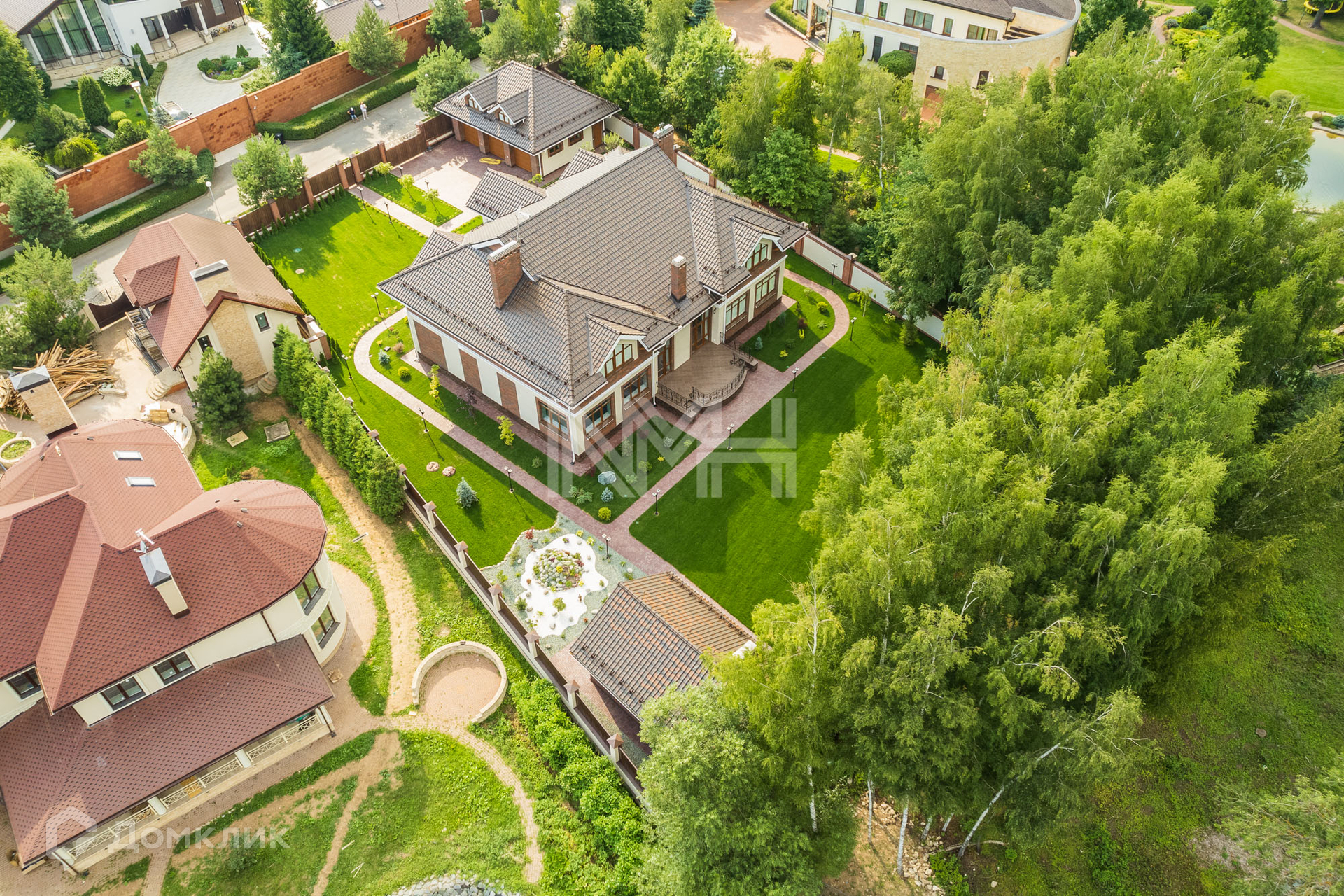 Особенности: высокие потолки, большое количество спален со своим с/у и гардеробной, СПА-зона (хамам, сауна, бассейн), зимняя беседка-барбекю, квартира для персонала, гараж на 3 а/м.