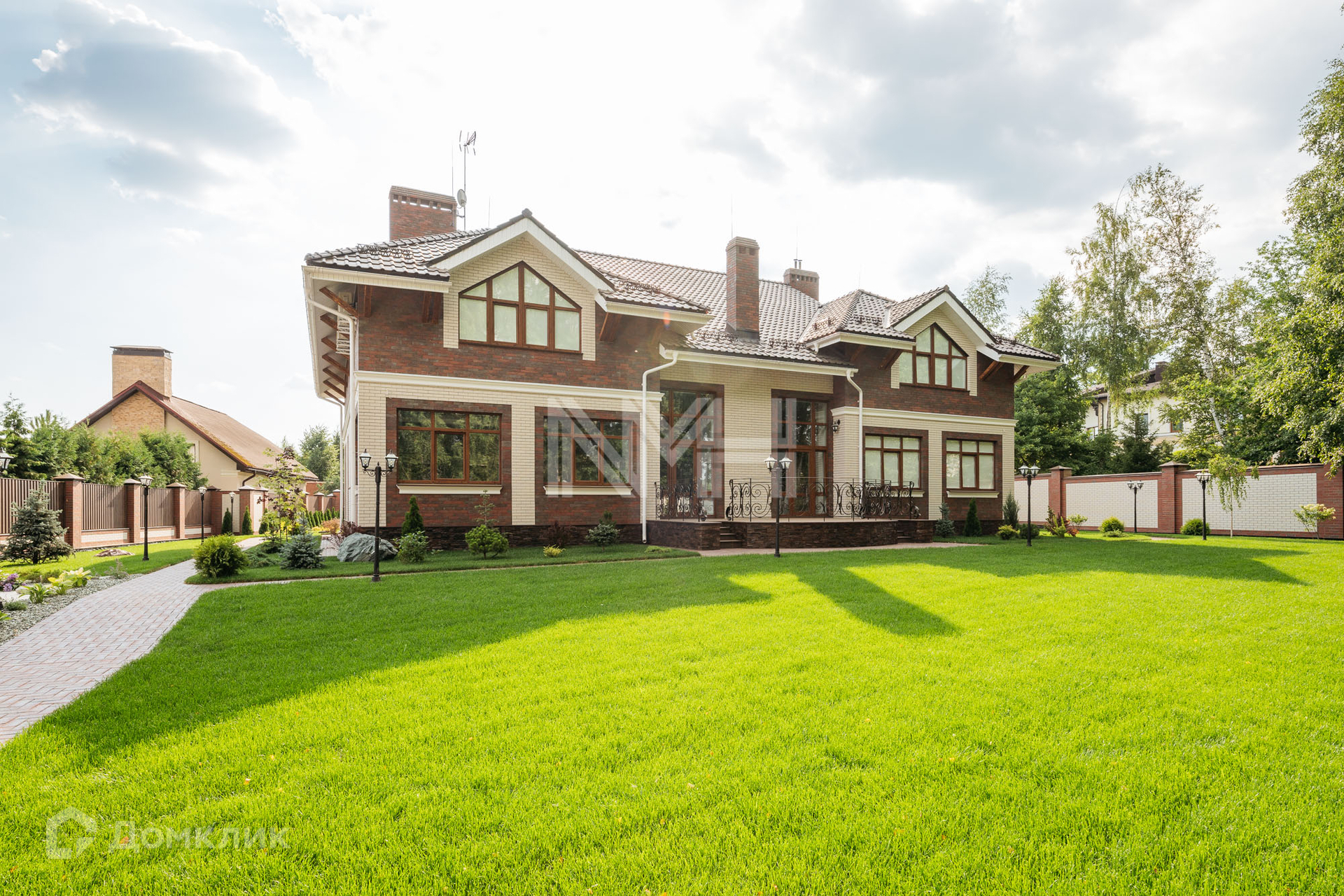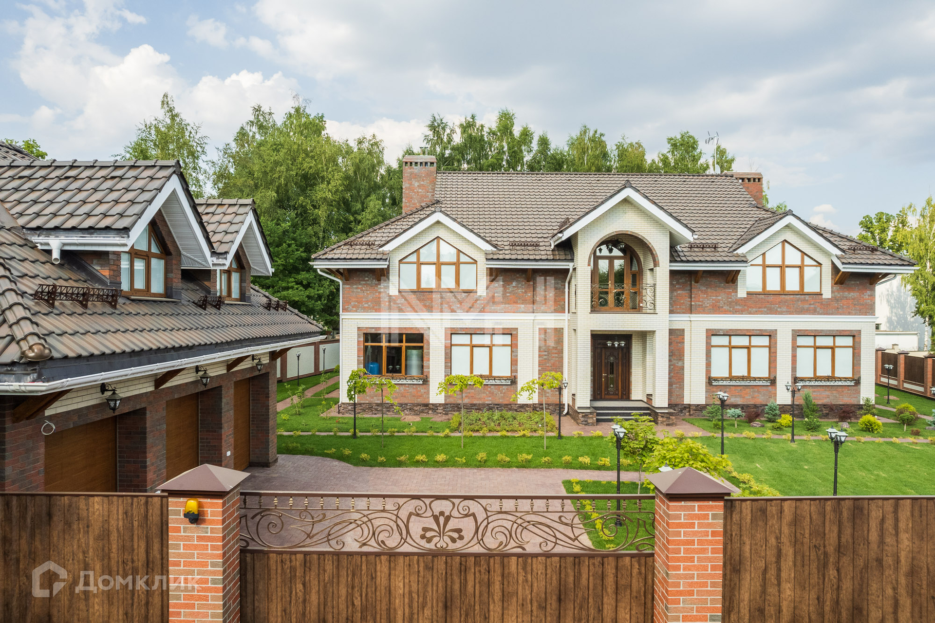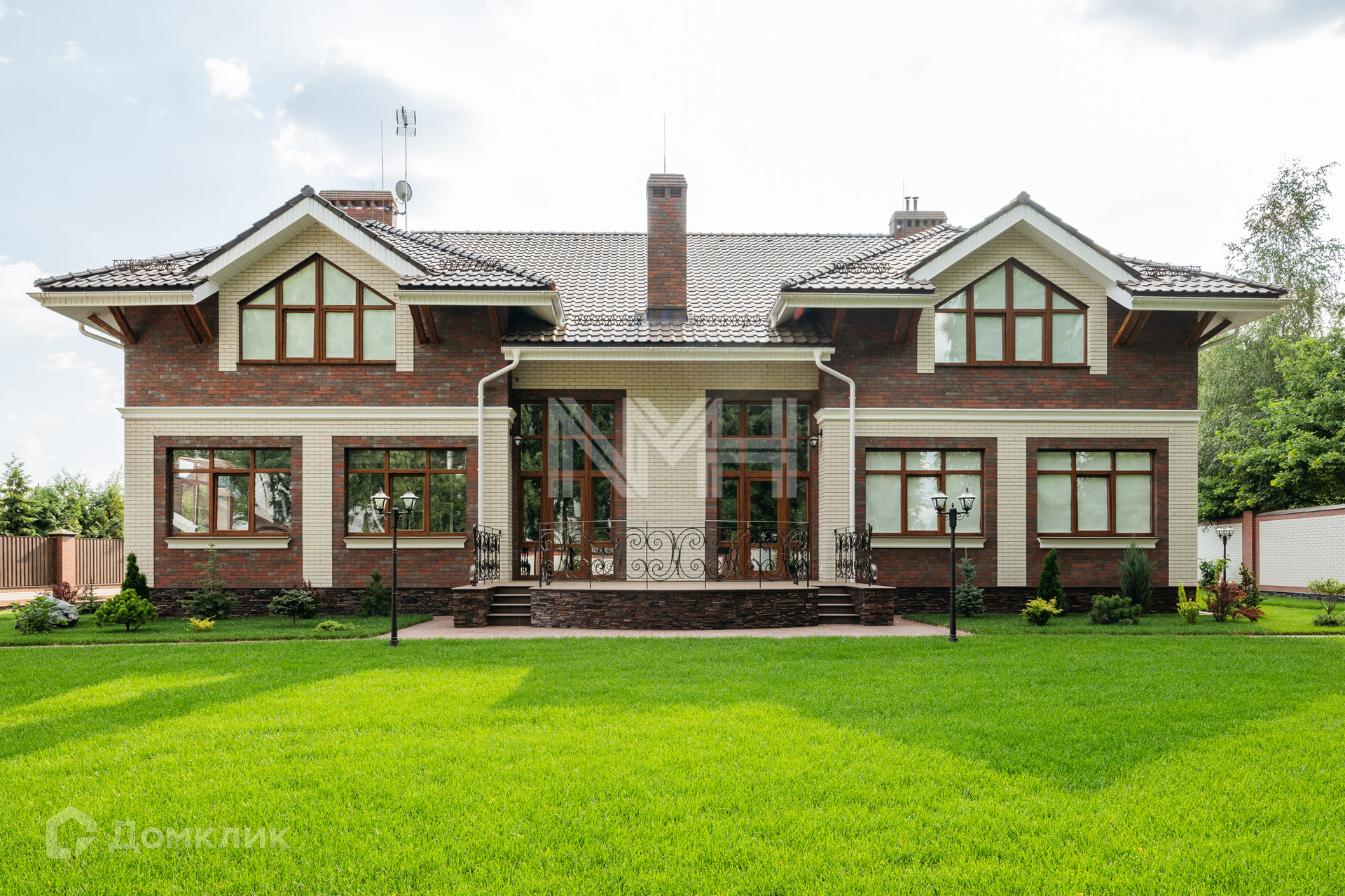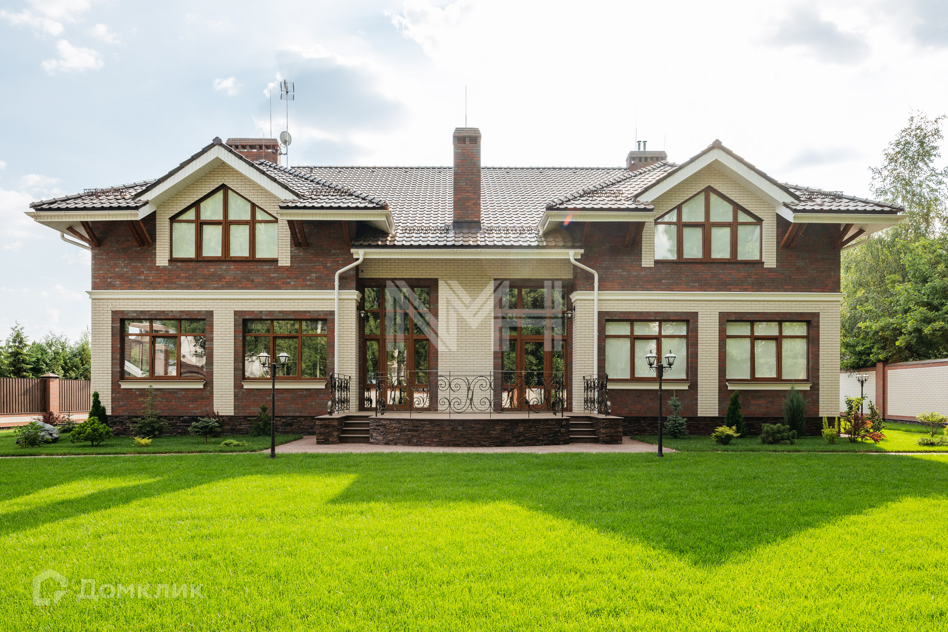 Загородный дом по авторскому проекту. Дом построен из кирпича, облицован немецким клинкерным кирпичом и декоративным камнем, крыльцо оформлено натуральным гранитом. Ламинированные стеклопакеты под дерево, с большой площадью остекления. Кровля — керамическая черепица Braas.